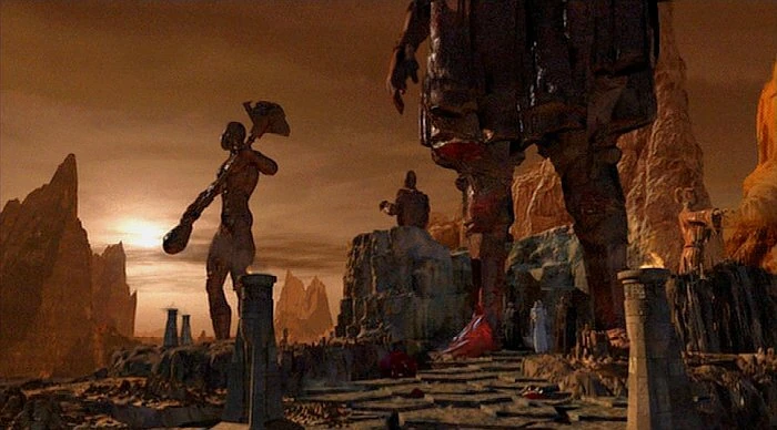 Náhorní plošina Vulkanu, na které se Spock snažil dosáhnout v roce 2273 Kolinahru, byla vyzdobena prastarými sochami. Jedna ze soch představovala vulkánského bojovníka držícího lirpu. (Star Trek: The Motion Picture)