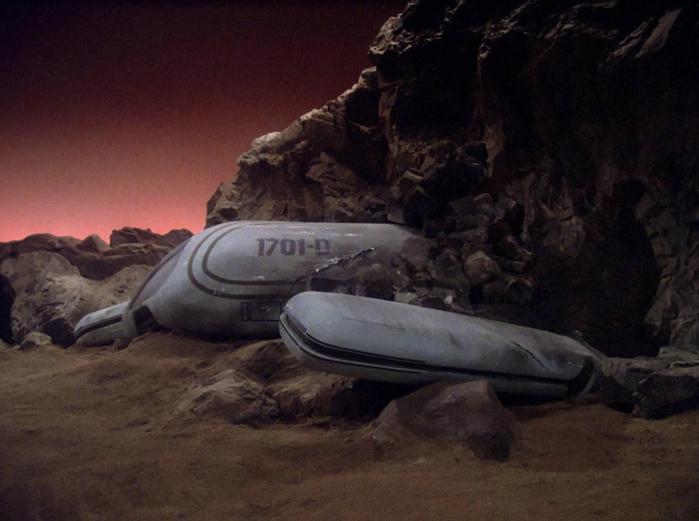 Drei Jahre später stürzen Captain Picard, Wesley Crusher und Dirgo auf Grund technischer Störungen auf einem Mond ab, der eine einzige Wüste ist. (TNG: Die letzte Mission)