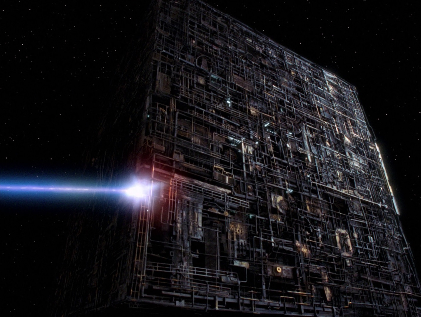 Einem Außenteam gelingt es schließlich, den Warpantrieb des Kubus vorübergehend außer Gefecht zu setzen. Aber dieses kann nichts mehr für Picard tun, er ist nun ein Borg. Auch die Hauptdeflektorschüssel ist vorbereitet worden, so dass man sich an Bord der Enterprise nicht mal vom Abfeuern abhalten lässt, als die Borg durch den assimilierten Picard zu ihnen sprechen, dessen Bezeichnung nun Locutus ist. Dieser warnt Riker, dass Angriff sinnlos ist und erklärt ihm, dass jeder Widerstand zwecklos ist. Darauf befiehlt Riker auf die Borg mit den verbesserten Deflektor zu feuern. (TNG: In den Händen der Borg)