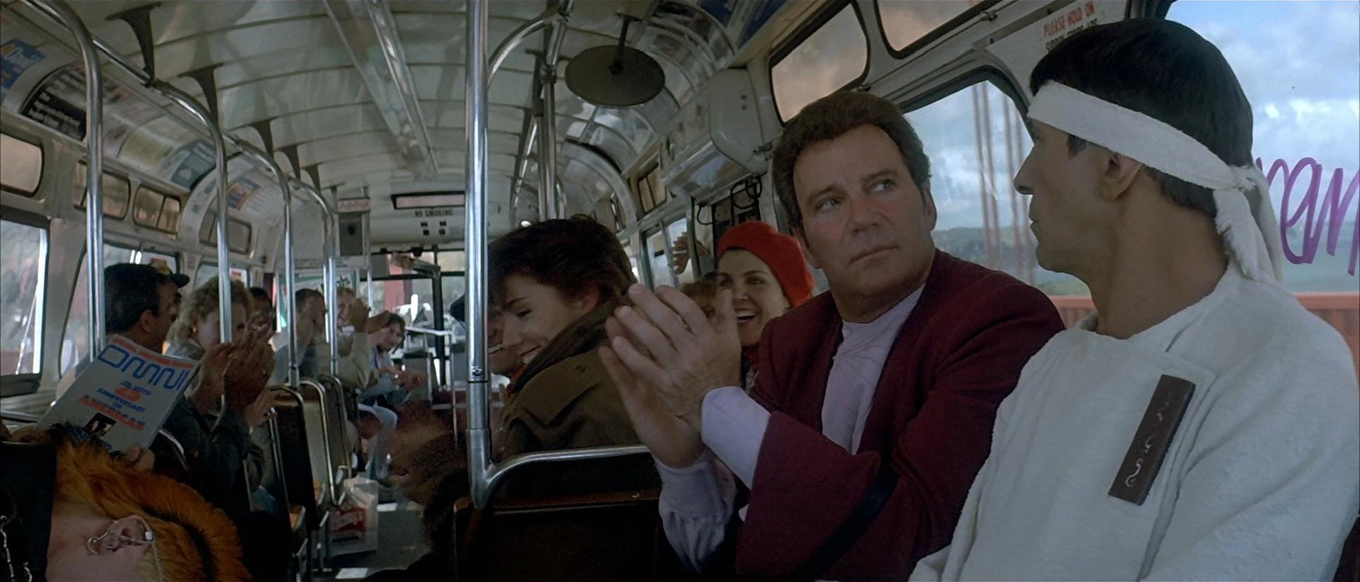 Als Admiral James Kirk und Spock im Jahr 1986 mit dem Bus zum Meeresinstitut nach Sausalito fahren wollen, lässt der Busfahrer sie nicht mitfahren, da sie kein passendes Geld haben. Im nächsten Bus sitzt ihnen ein Kaugummi kauender Punk gegenüber. Ohne Rücksicht auf die anderen Fahrgäste zu nehmen, hört er während der Fahrt laute Musik. Aus seinem Ghettoblaster plärrt der Song „I Hate You“. Als Kirk ihn bittet, den Krach abzustellen, dreht der Punk die Lautstärke bis zum Anschlag auf und zeigt Kirk den Mittelfinger, eine abschätzige Geste auf der Erde des 20. und 21. Jahrhunderts. Spock wendet kurzerhand den vulkanischen Nackengriff an und der Punk bricht bewusstlos über seinen Ghettoblaster zusammen, welcher daraufhin sofort verstummt. Spock erntet für diese Aktion von den anderen Fahrgästen spontanen Applaus. (Star Trek IV: Zurück in die Gegenwart)