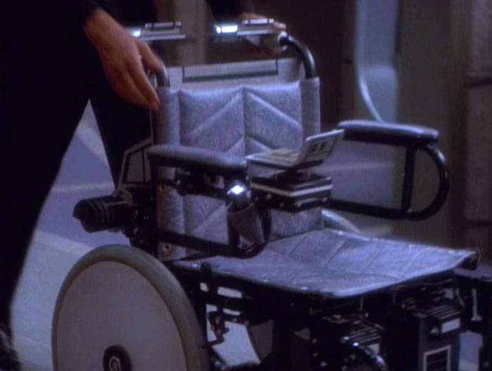 In Gesellschaft von Jadzia ist Doktor Bashir dabei, den Rollstuhl, den er nach Meloras Spezifikationen angefertigt hat, zu testen. Gerade erklärt er, dass Meloras normale Anti-Schwerkraft-Einheit auf Deep Space 9 nicht funktioniert, als sie die Nachricht erhalten, dass die Yellowstone mit Fähnrich Melora Pazlar an Luftschleuse 14 eingetroffen ist. Auf dem Weg dorthin treffen sie auf Chief O'Brien. Gemeinsam diskutieren die drei noch einmal über Meloras Situation. Der Doktor erklärt, dass er den Stuhl leicht modifiziert hat, um ihr noch etwas mehr Mobilität zu verschaffen. O'Brien meint, dass er die meisten Bereiche jetzt mit Rampen ausgestattet hat. Trotzdem gibt es immer noch einige Bereiche auf der Station, zu denen Melora der Zugang verwehrt bleibt.