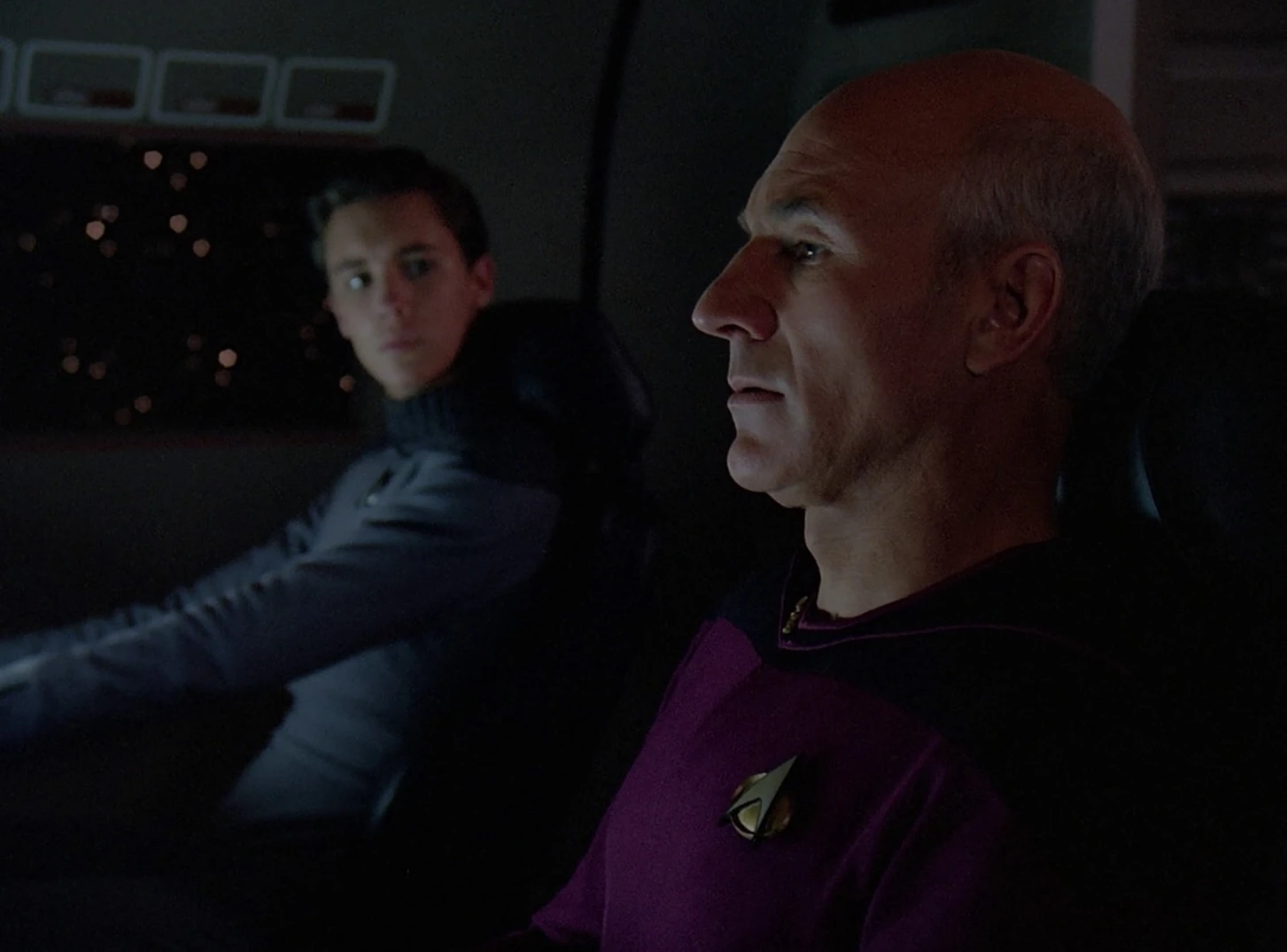Im Shuttle unterhält sich Picard mit Crusher. Picard ist der Meinung, für ihn sei diese Reise reine Zeitverschwendung. Crusher fragt nach dem Grund der Reise. Picard berichtet lediglich, dass es nicht seine Idee war, er solle sich aber keine Gedanken machen, es habe nichts mit ihm zu tun. Dann rückt er mit der Sprache heraus: Er sei nicht gerade glücklich mit der ihm bevorstehenden Herztransplantation. Wesley ist sichtlich überrascht. Picard berichtet, nach seiner Herzverletzung sei ein schneller Ersatz benötigt worden, leider war dieses Ersatzimplantat fehlerhaft.