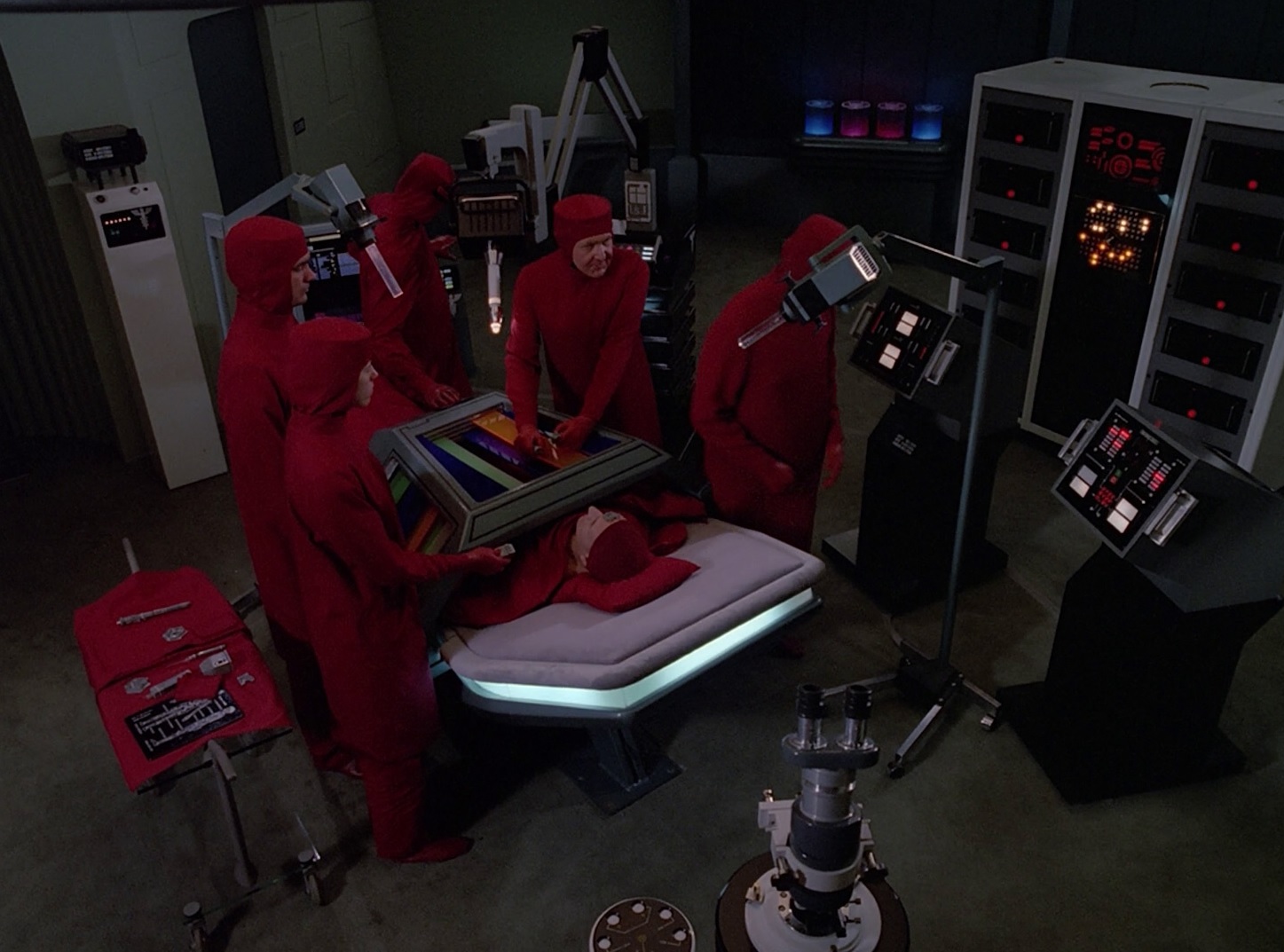Auf der Raumbasis sind alle Vorbereitungen für die OP getroffen. Picard wird sediert und die OP beginnt.