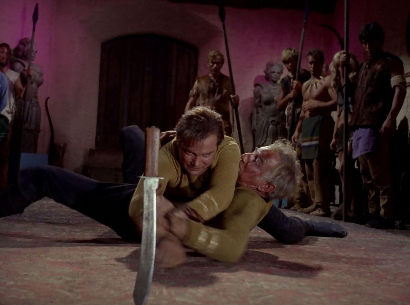zu Kirk, als dieser gegen zwei Yangs kämpft