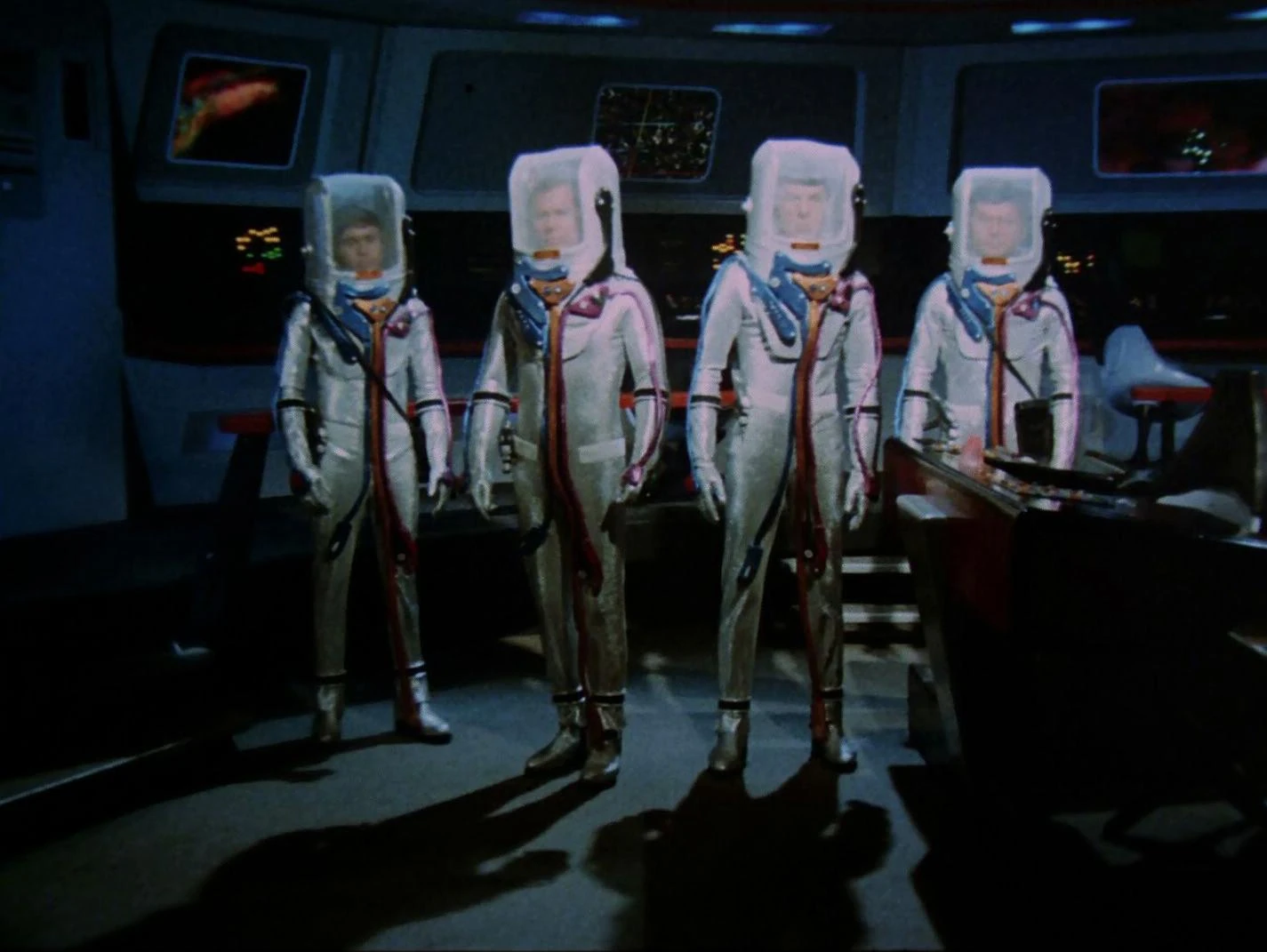 Schließlich sieht Spock keine andere Möglichkeit, als den Captain für tot zu erklären. Uhura sieht ihn aber in ihrem Quartier, später auch Scott im Maschinenraum und schließlich taucht sein Bild auch auf der Brücke auf.
