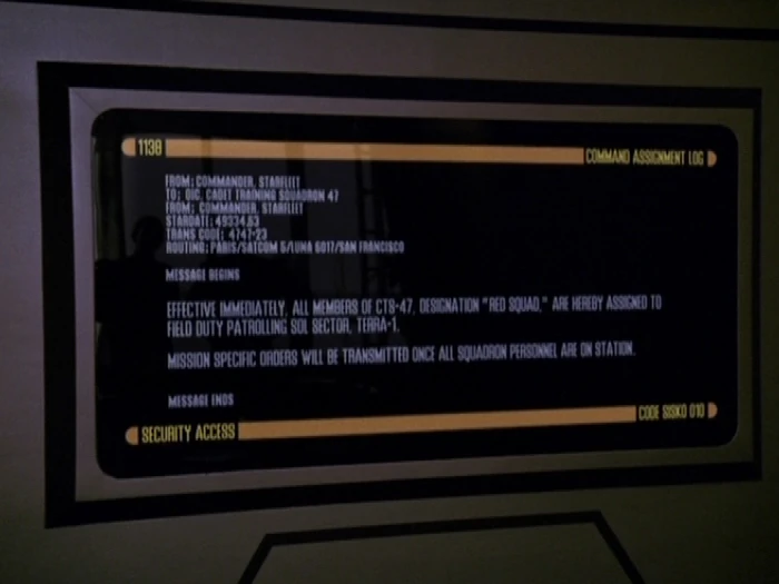 Einige Tage nach der Sabotage am Energierelaissystem liest sich Benjamin Sisko die Berichte über den Vorfall im Hauptquartier der Sternenflotte immer wieder durch. In einem Gespräch mit Odo erklärt er, dass ihm das, was er dort sieht, nicht gefällt. Bei jedem Lesen hat er mehr und mehr unbeantwortete Fragen. Ihn wundert so zum Beispiel, wie die Wechselbälger die Division für planetare Operationen infiltrieren konnten. Außerdem fragt er sich, wie sie an die Codes für das Kontrollnetz der Divisionscomputer kamen. Die wichtigste Frage jedoch ist, wie es ihnen gelingen konnte, alle Energierelais der Erde zur gleichen Zeit abzuschalten. Auch Odo schaut sich die Berichte an. Er sieht sich die Transporterlogbücher der USS Lakota an und ihm fällt dabei eine Gruppe namens Red Squad auf. Er erkundigt sich bei Sisko, ob er diese kennt. Der Captain entgegnet, dass es sich dabei um ein Eliteteam aus Kadetten der Sternenflottenakademie handelt. Er berichtet von Nogs Aussage, laut der jeder der Studenten dazugehören will. Das beruhigt den Sicherheitschef etwas, erklärt dies doch, weshalb die Gruppe der Red Squad genau 26 Minuten nach Ausrufung des Ausnahmezustands zurück zur Akademie gebeamt wurde. Doch Sisko findet das gar nicht so plausibel, mobilisierte die Sternenflotte doch Hunderte von Einheiten während des Energieausfalls. Eine Demobilisierung ergibt für ihn keinen Sinn. Odo fand dies erst auch eigenartig, nahm dann jedoch an, dass die Sternenflotte sie, da es sich um Kadetten handelt, nur in Sicherheit bringen wollte. Doch dagegen spricht eine Entdeckung von Sisko. Er zeigt Odo einen Befehl, der drei Stunden später herauskam, dass alle Kadetten zum Felddienst eingesetzt werden. Daraus schließt der Sicherheitschef, dass die Red Squad nicht zu ihrer Sicherheit zurückgeholt wurden. Das wirft nun die Frage auf, weshalb man die Gruppe demobilisierte, um sie nur drei Stunden später wieder zu mobilisieren.
