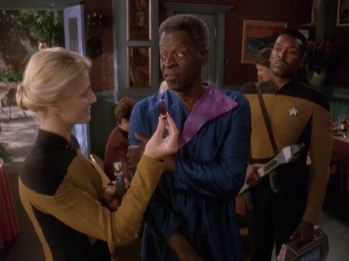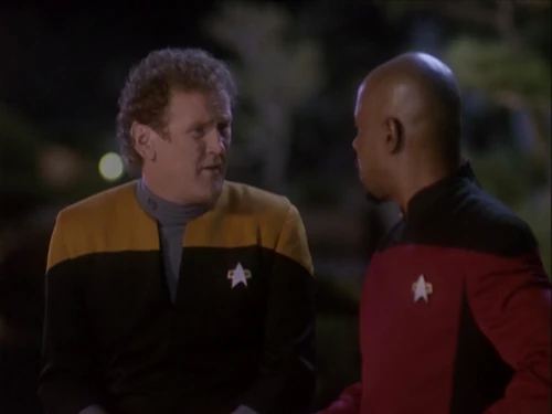 Im Sisko's lässt sich Joseph Sisko ohne Gegenwehr einem Bluttest unterziehen. Zwei Sternenflottenoffiziere führen diesen durch. Der Test ist negativ, was der Mann natürlich auch nicht anders erwartet hatte. Während die beiden Sternenflottenoffiziere gehen, läuft der Besitzer des Restaurants freudig strahlend zu seinem Sohn an den Tisch. Benjamin erkennt, dass sein Vater sehr vergnügt ist, woraufhin der fragt, ob er ein Problem damit hat. Natürlich ist der Captain darüber erfreut, allerdings erinnert er seinen Vater daran, dass er vor ein paar Tagen über den Test nicht so begeistert war. Joseph entgegnet, dass damals das Energienetz noch nicht sabotiert wurde. Das ist Benjamin natürlich bewusst, allerdings erinnert er seinen Vater daran, dass er in der Angelegenheit sehr unnachgiebig war. Doch der Restaurantbesitzer versteht das nicht, hatte Benjamin doch kritisiert, dass er nicht getestet werden wollte und nun, da er sich testen ließ, scheint er auch nicht zufrieden zu sein. Doch der Captain entgegnet, dass das nicht das Problem ist. Joseph erkundigt sich nun, wo dann das Problem liegt, woraufhin sein Sohn erwidert, dass er es nicht weiß und es vielleicht nur Paranoia ist.