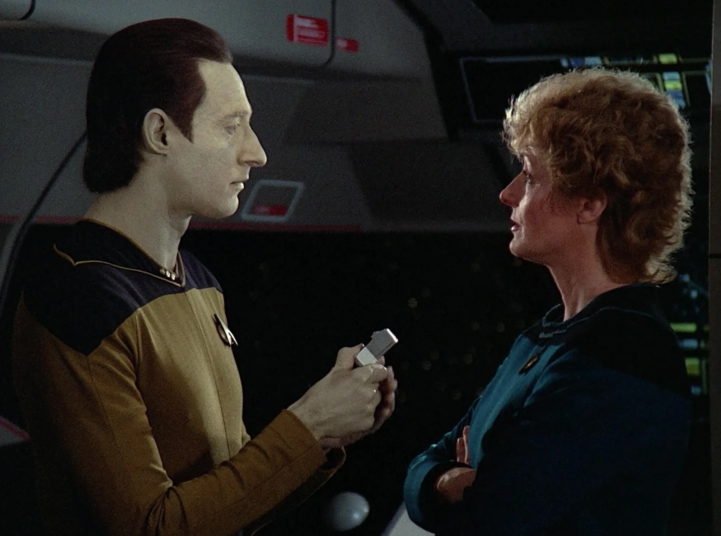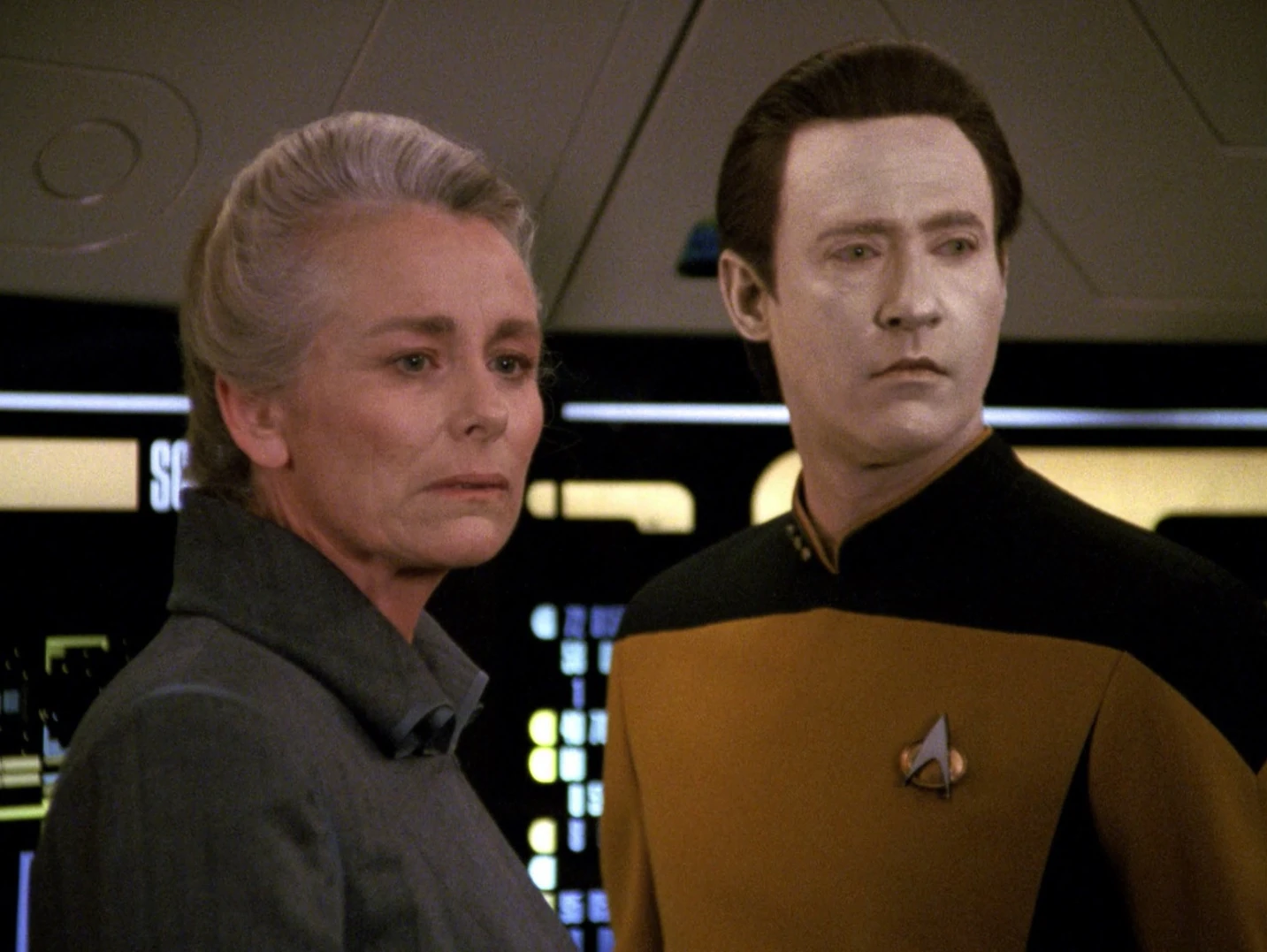 Data kümmert sich um die schwangere Troi