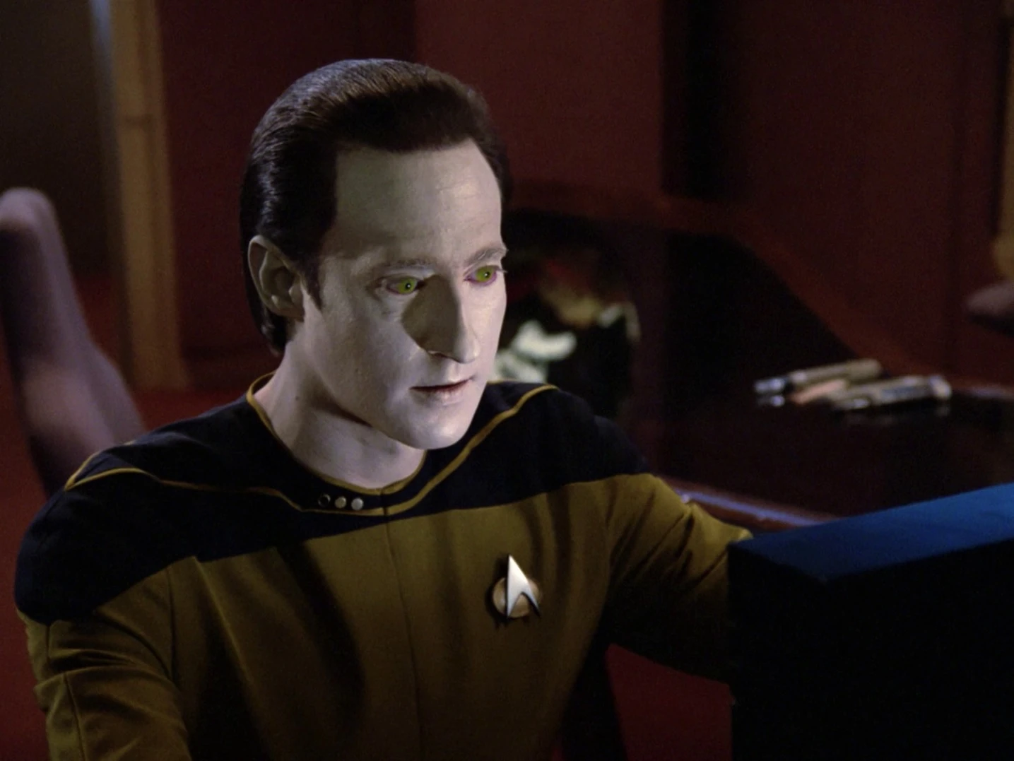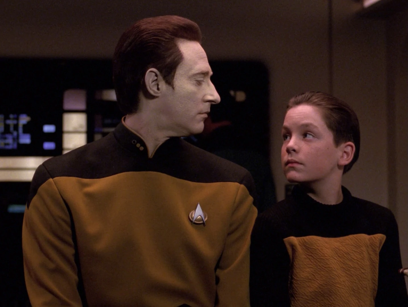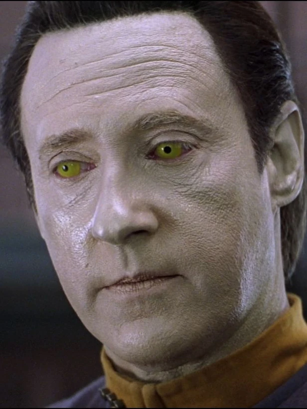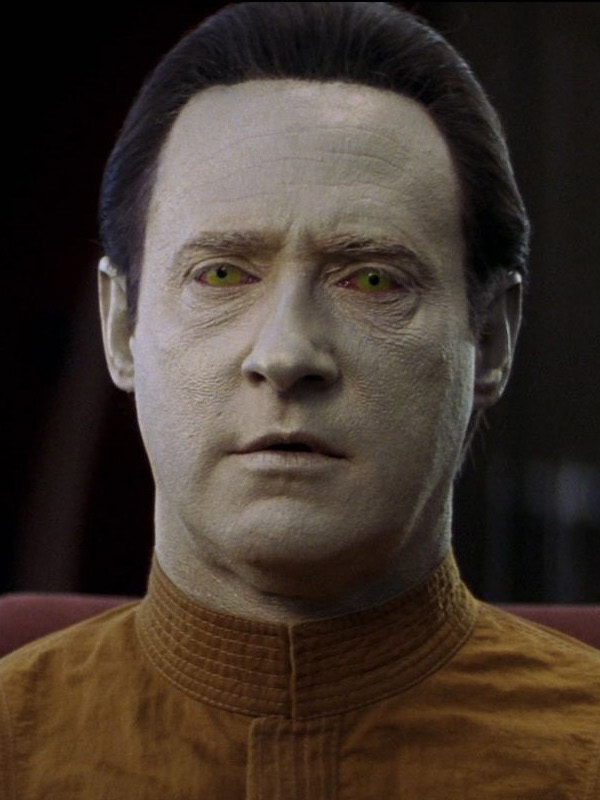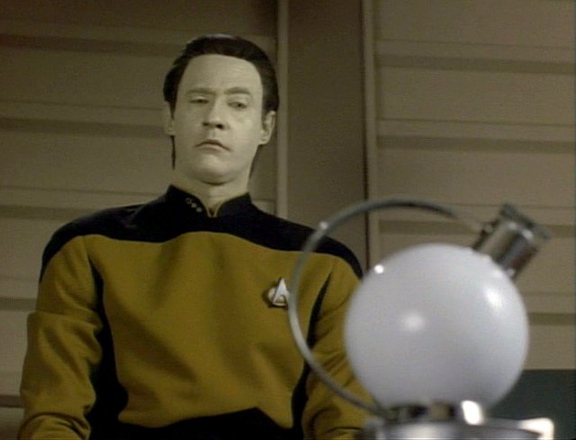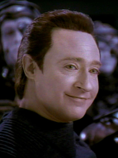 Als Data aktiviert wird, machen ihm die Offiziere klar, dass dieser eine Maschine ist, doch Data erkennt, dass mehr in ihm steckt und er beginnt den Menschen nachzueifern, um sich weiterzuentwickeln. (TNG: Der rechtmäßige Erbe)