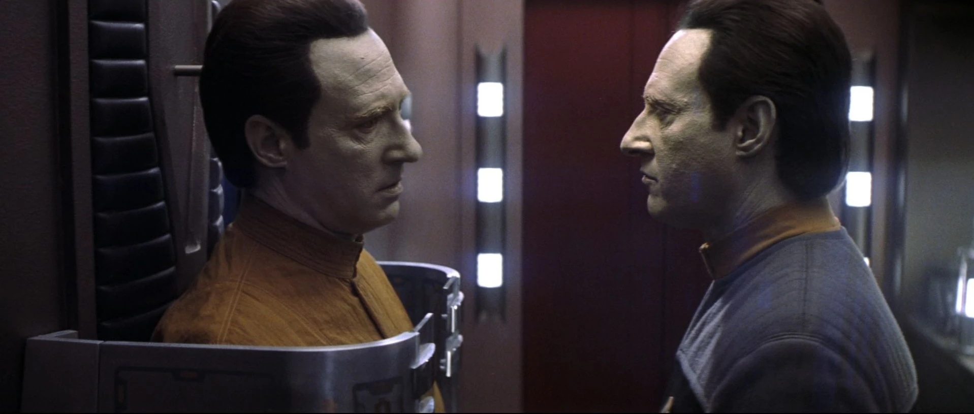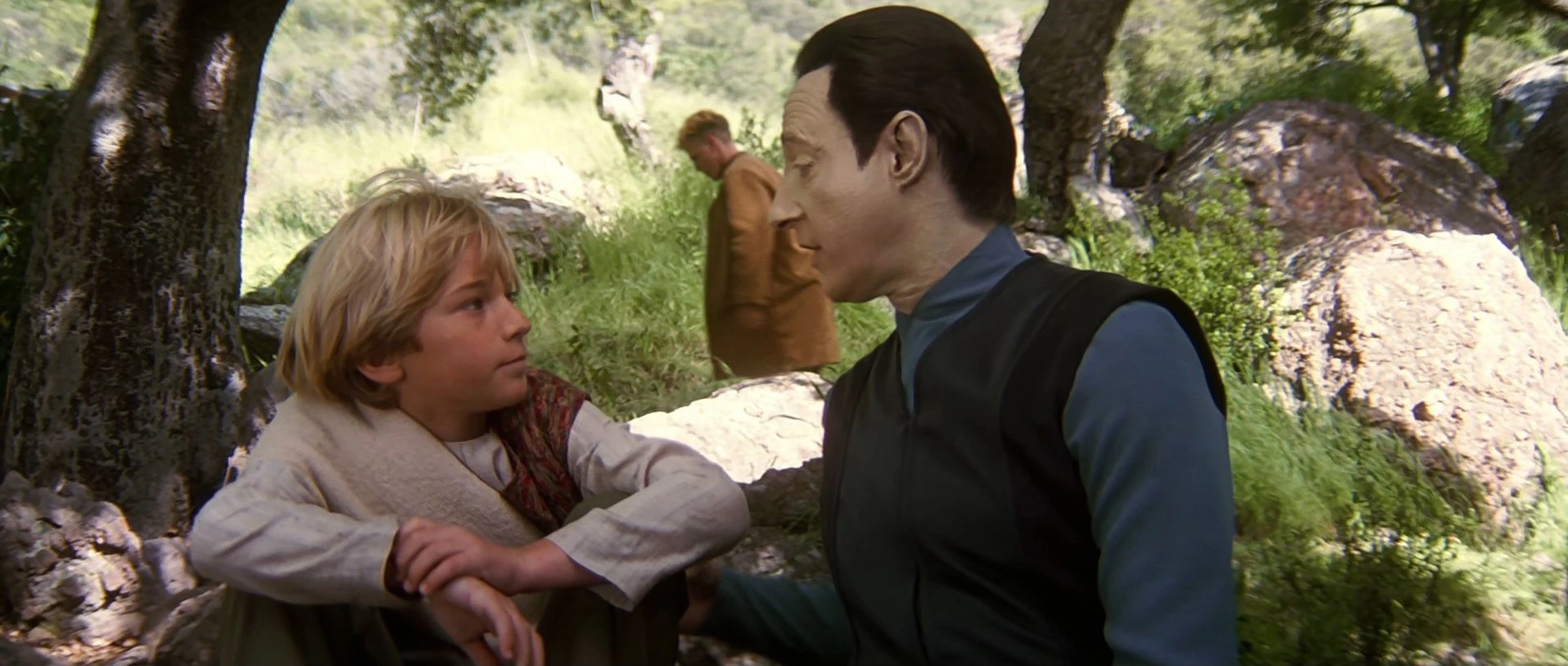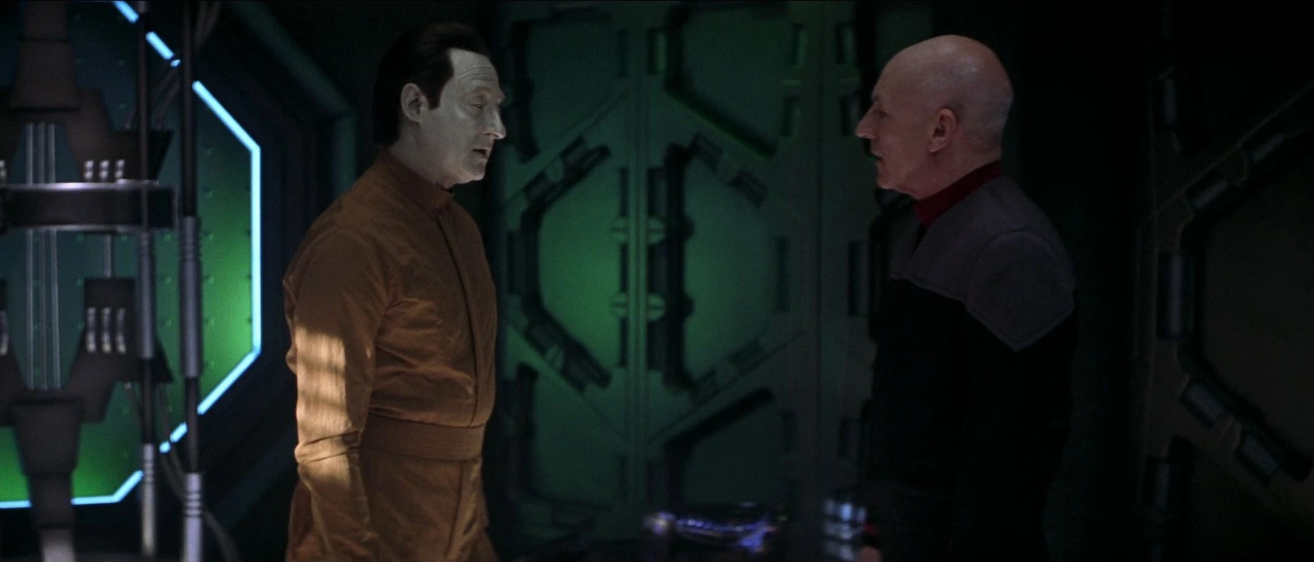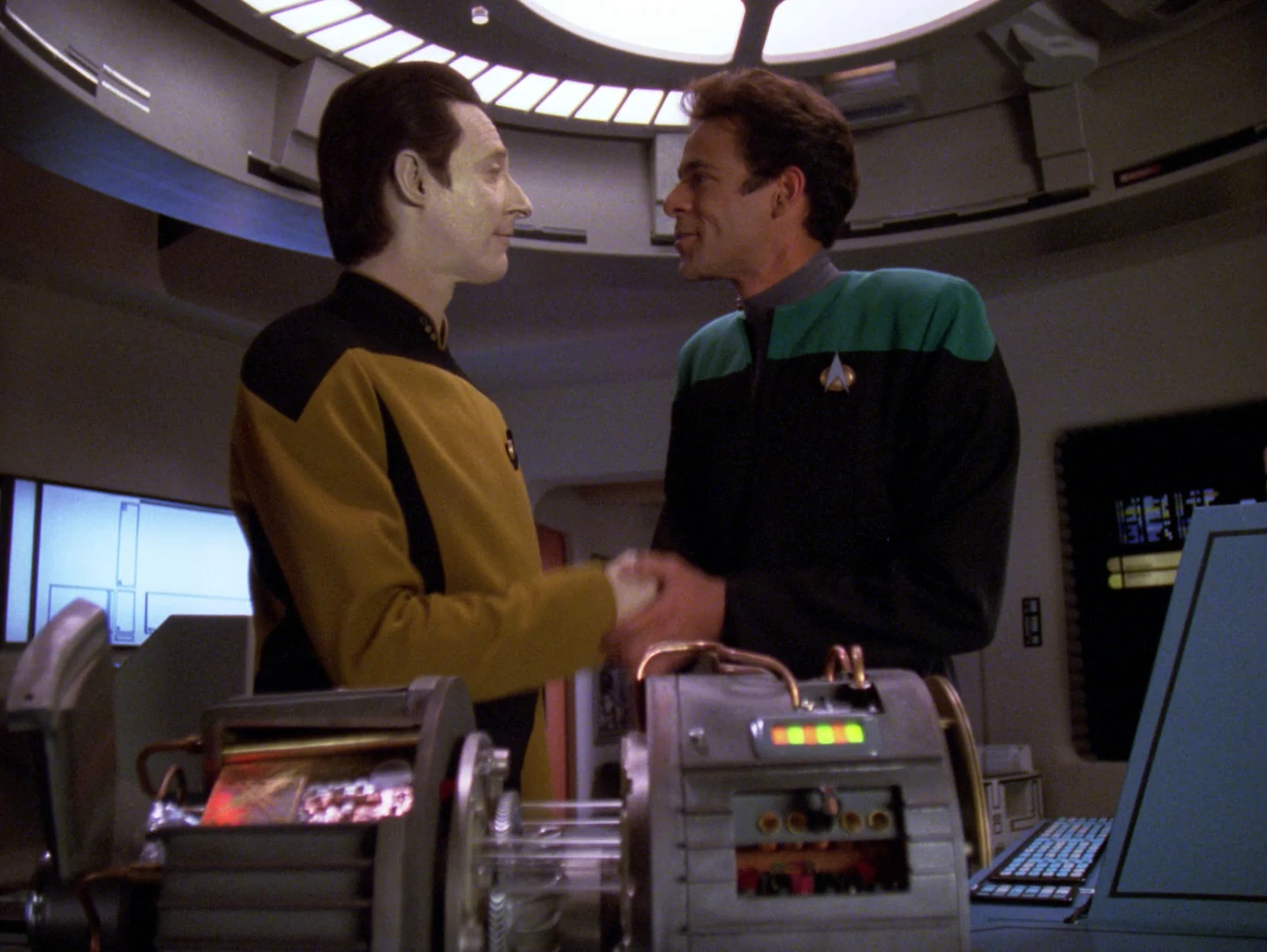 Als Data aktiviert wird, machen ihm die Offiziere klar, dass dieser eine Maschine ist, doch Data erkennt, dass mehr in ihm steckt und er beginnt den Menschen nachzueifern, um sich weiterzuentwickeln. (TNG: Der rechtmäßige Erbe)