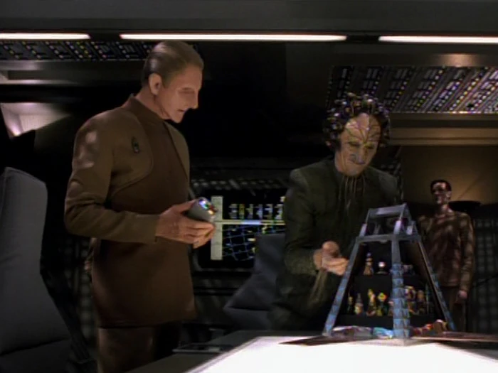 Odo erinnert Sisko daran, dass Garak nicht sehr kooperativ ist, Fragen aus seiner Vergangenheit zu beantworten. Der Commander wiederum weiß, dass der Obsidianische Orden nicht gerne Fragen über seine ehemaligen Agenten beantwortet. Doch Odo glaubt, dass er Quellen aus der Cardassianischen Regierung nutzen kann, um näheres zu erfahren. Er erbittet ein Shuttle und Sisko stimmt zu.