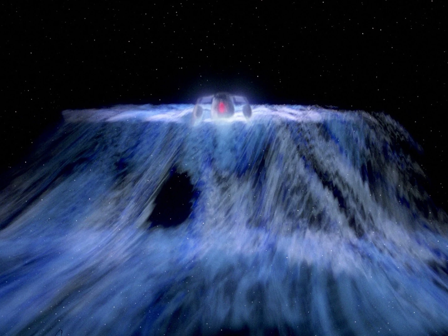 Die Soliton-Welle wird gezündet und die Enterprise folgt dem Testschiff, dass dank der Soliton-Welle auf Warpgeschwindigkeit beschleunigt. Das Testschiff hält jedoch der massiven Belastung durch die Störsignale der Solitonwelle nicht stand. Die Störsignale erzeugen ein Energieungleichgewicht, dass sich nicht kompensieren lässt und das Testschiff explodiert. Die Druckwelle der Explosion verursacht den Ausfall der Sensoren und des Warpantriebs auf der Enterprise.
