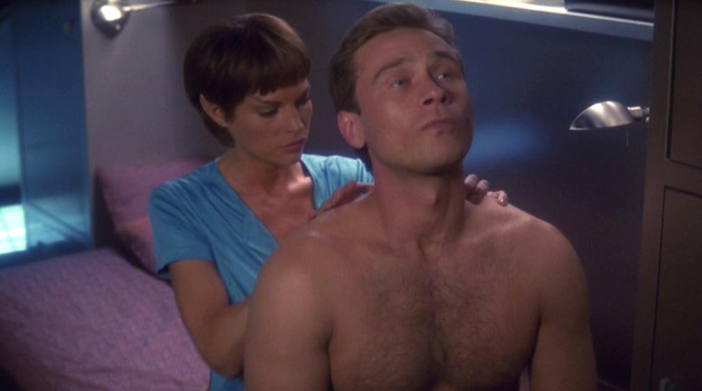 Nachdem Trip T'Pol bei der Stimulierung von Nervenknoten geholfen hat und denkt ihr Gegenangebot sei sexuell gemeint, versucht er sich mit der Injektion eines Schlafmittels durch Phlox herauszureden.