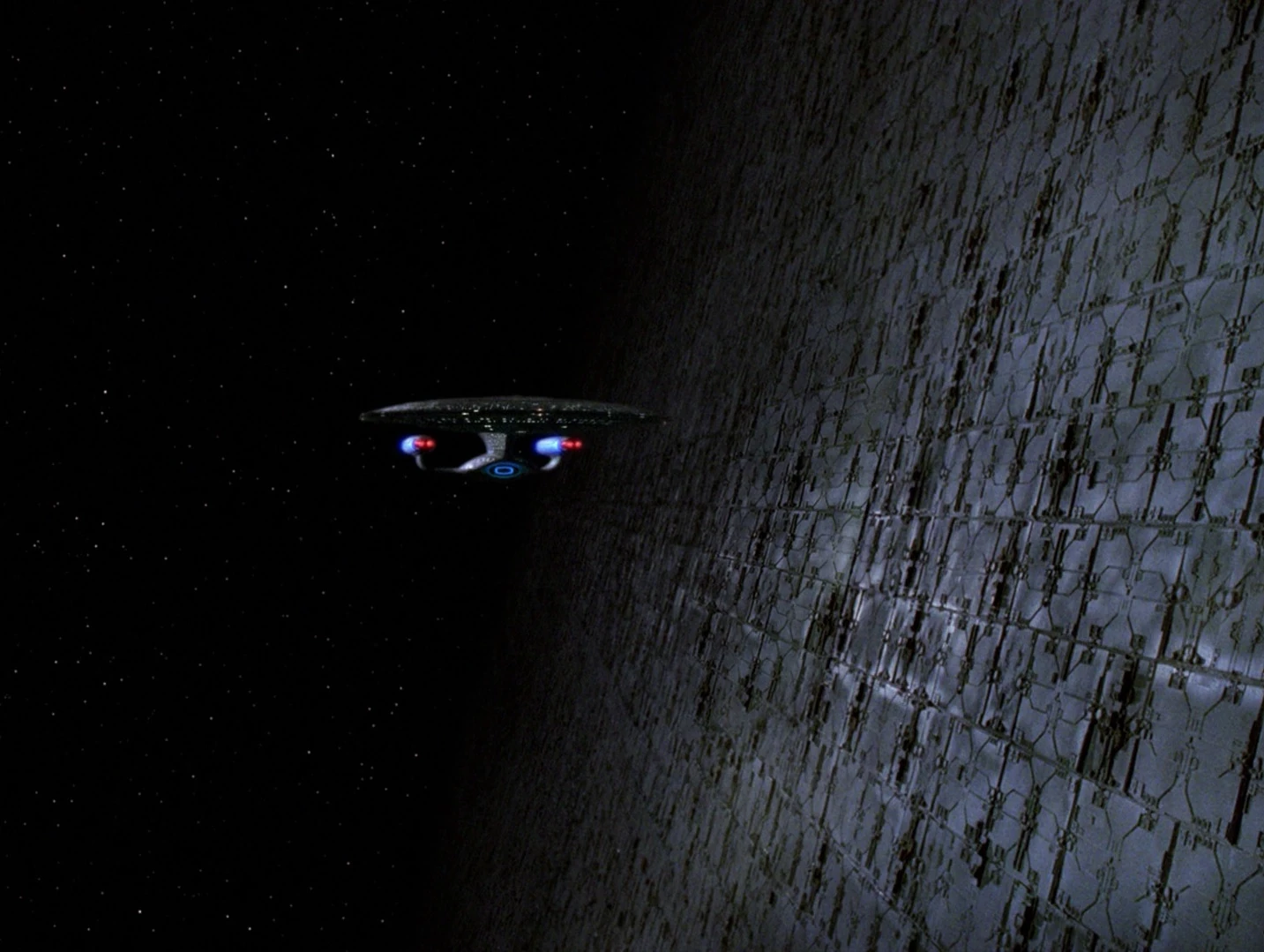 Die Enterprise-D in der Umlaufbahn um eine Dyson-Sphäre