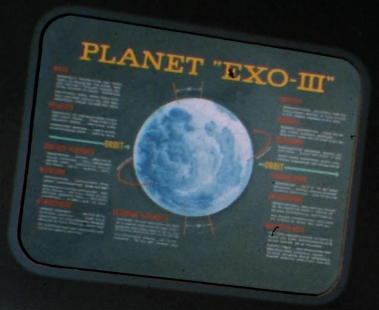 2268 ist Exo III in der Datenbank der USS Defiant zu sehen, bevor diese ins Spiegeluniversum verschwindet. (TOS: Das Spinnennetz; ENT: Die dunkle Seite des Spiegels, Teil II)