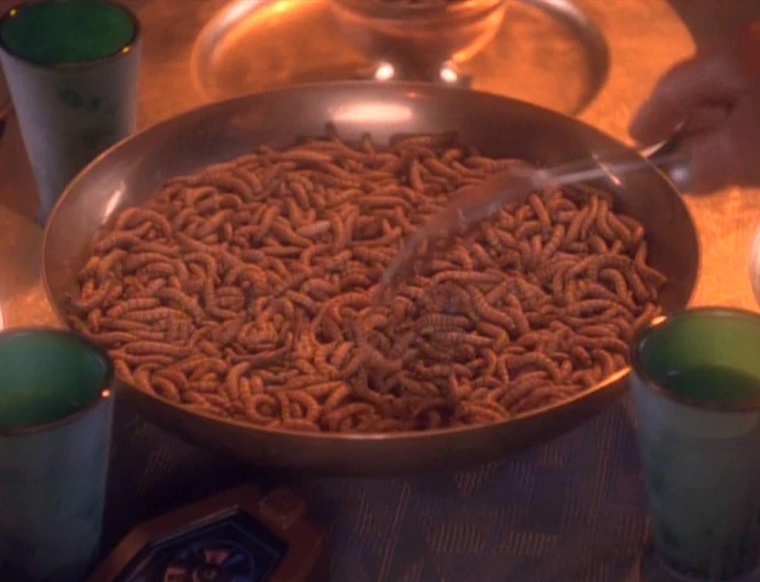 Die Ferengi ernähren sich größtenteils von Insekten und Weichtieren, darunter Schnecken, Maden, Larven und Würmer. Sie essen diese Tiere nicht nur, sondern stellen aus ihnen auch Getränke, wie zum Beispiel den Schneckensaft her. Ferengi essen ihre Nahrung, die übrigens auch aus Gemüse bestehen kann, mit Stäbchen, wobei es durchaus üblich ist, dass Weibliche ihren Männern und Söhnen die Nahrung vorkauen müssen. Eine weitere Delikatesse ist der sogenannte Käfer-Schnupftabak, der aus hupyrianischen Käfern hergestellt wird. (DS9: Der Aufstieg, Die Nachfolge, Familienangelegenheiten)
