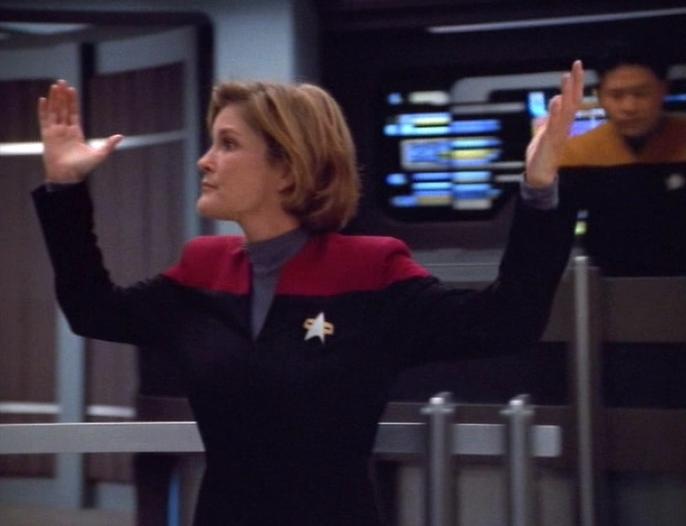 Kathryn Janeway versucht, ein Signal zu senden.