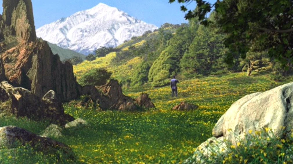 Crewman Elizabeth Cutler untersucht wurmähnliche Fische in einem nahegelegenen See. Archer, Trip und Mayweather bestaunen die beiden Monde des Planeten, die auch bei Tage zu sehen sind. Crewman Ethan Novakovich pflückt eine gelbe Blume auf einer malerischen Bergwiese und genießt deren Duft. Gerade als Archer, Trip und Mayweather an einen Bach kommen meldet sich T'Pol bei ihnen, da sie zum vereinbarten Zeitpunkt nicht am Treffpunkt erschienen sind. Die drei beschließen deshalb begleitet von Porthos, sofort zum Shuttle zurückzukehren.