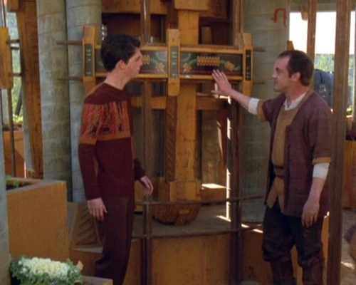 2376 zeigt Leucon Icheb den genetischen Resequenzer, den die Brunali aus Teilen beschädigter Raumschiffe gebaut haben. (VOY: Icheb)
