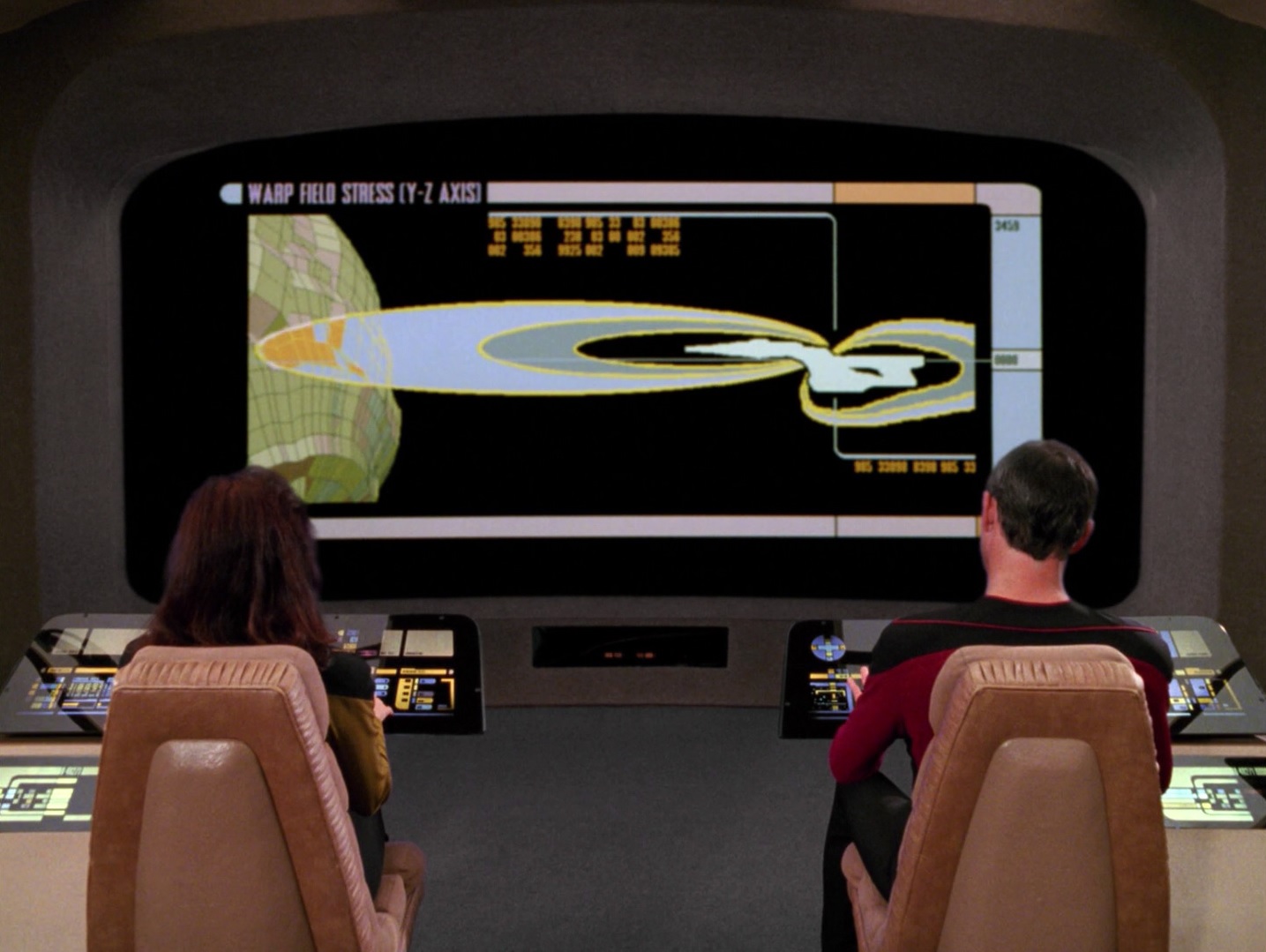 - Im Jahr 2366 dehnt die Enterprise unter Captain Picard ihr Warpfeld aus, um den Mond von Bre'el IV mit dem Traktorstrahl bewegen zu können, der auf den Planeten zu stürzen droht. Die Ideen geht auf einen Vorschlag von Q zurück, der der Crew der USS Enterprise vorschlägt, die Gravitationskonstante zu ändern, um den herabstürzenden Mond von Bre'el IV aufzuhalten. Da er selbst kurzzeitig seine Kräfte verloren hat, ist es ihm nicht möglich, dies selbst zu tun, was ein Q normalerweise machen kann (TNG: Noch einmal Q).