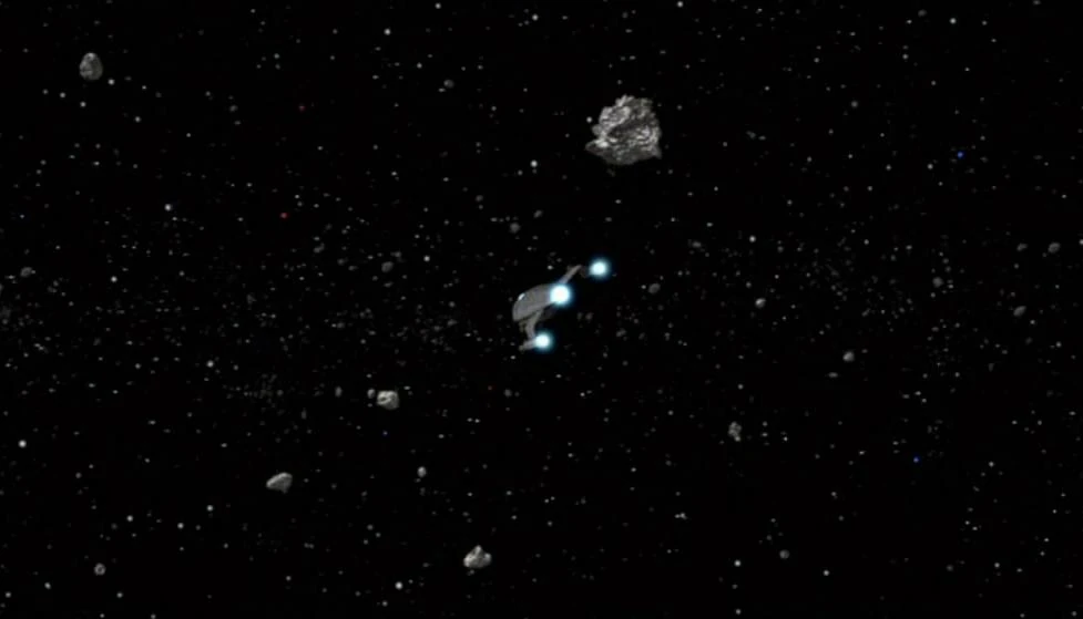 Kurz darauf wird das Schiff von der USS Enterprise (NCC-1701) verfolgt. Um der Enterprise zu entkommen, fliegt das Schiff in einen Asteroidengürtel. Durch die hohe Fluchtgeschwindigkeit fällt beim Schiff der Antrieb aus und es droht im Asteroidenfeld zu zerschellen. Um das Schiff zu schützen, gibt Captain Kirk den Befehl, die Deflektoren der Enterprise um das Schiff von Harry Mudd auszuweiten. Mudds Schiff droht vernichtet zu werden und Mudd sendet einen Notruf. Er wird an Bord der Enterprise gebeamt, doch schnell geben auch die Deflektoren der Enterprise nach und die übrigen Personen, welche sich noch an Bord befinden, werden ebenfalls an Bord der Enterprise gebeamt. Nur wenige Sekunden später wird das Schiff von Harry Mudd durch die Kollision mit einem Asteroiden vernichtet.