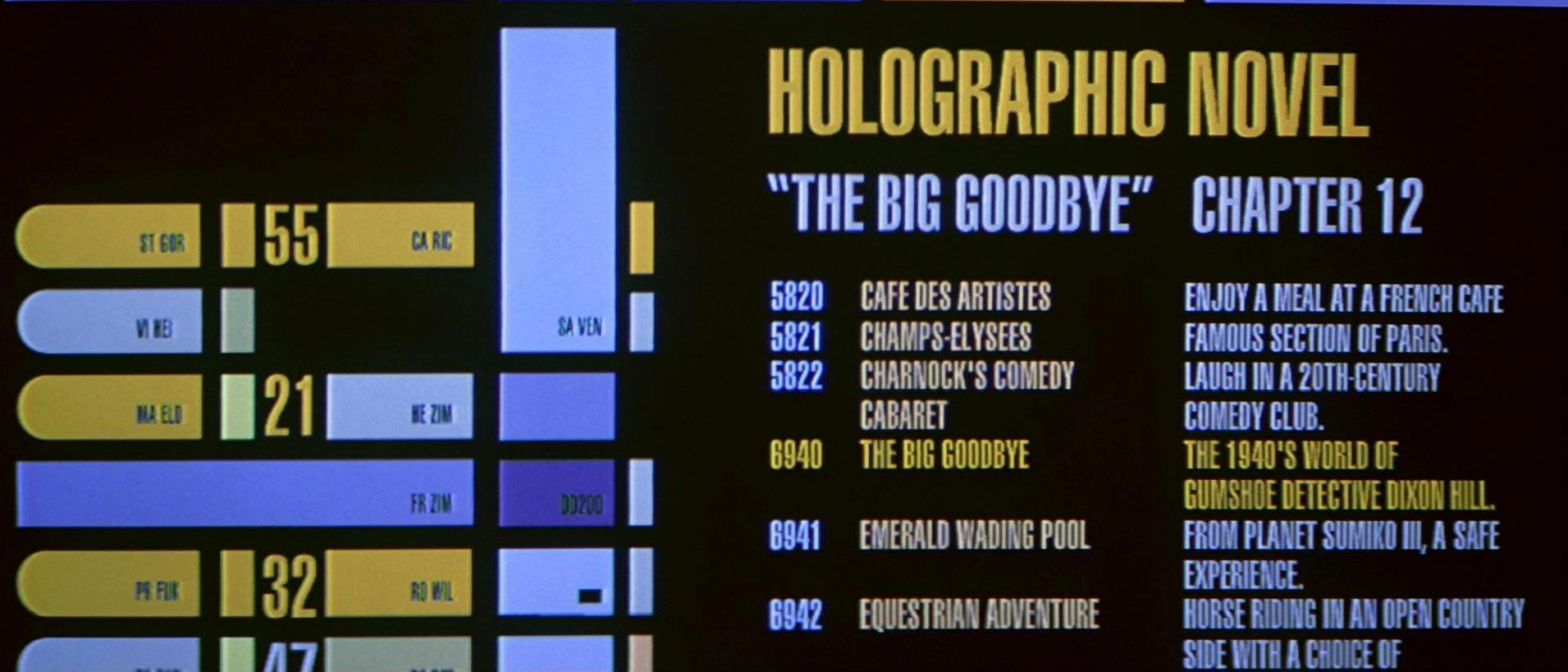 Eine Auswahl an Holoprogrammen an Bord der Enterprise-E