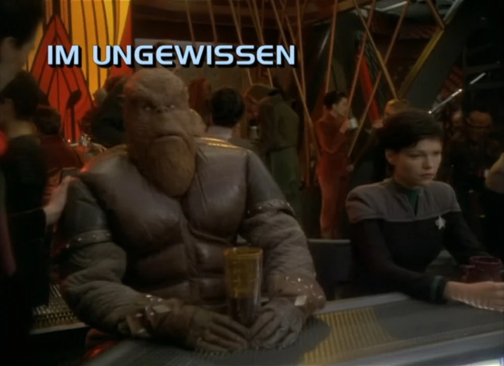 Im Replimat holt sich Dax ein Getränk aus dem Replikator. Dann gesellt sie sich an den Tisch von Dr. Bashir und Chief O'Brien. Dabei beginnt sie zu erzählen, dass sie vor kurzem Captain Boday begegnete. Dem Chief sagt der Name zunächst nichts, worauf der Doktor ihn daran erinnert, dass es sich um den Gallamiten handelt, den Jadzia öfter traf. Nun erinnert sich auch O'Brien an den Mann mit dem aufgesetzten Grinsen und dem transparenten Schädel. Er erkundigt sich, was der Mann auf der Station macht. Ezri erwidert, dass die Gallamiten Duranium für Kriegswaffen liefern. Doch Bashir kommt zurück auf Jadzia zu sprechen und erklärt, dass er nicht verstehen kann, was sie in dem Mann gesehen hat. Sarkastisch entgegnet der Chief, dass es wohl das Gehirn gewesen sein muss, was die beiden Männer zum Lachen bringt. Nun will der Doktor wissen, ob Boday wusste, wer Ezri ist. Die wiederum gesteht, dass er es nicht sofort erkannte, woraufhin der Doktor entgegnet, dass er sicher sehr charmant war, als er es erfuhr. Dax bestätigt das, woraufhin Bashir erklärt, dass der Mann widerlich, überheblich und arrogant ist. Doch Ezri fügt hinzu, dass er eben auch charmant ist. In diesem Moment tritt Kira zu ihnen an den Tisch. Sofort will der Chief wissen, ob etwas nicht stimmt. Darauf entgegnet die Frau, dass gerade eine Nachricht von den Klingonen hereinkam. Demnach wurden die Rotarran und die Koraga von einer Patrouille des Dominions überfallen. Erschrocken erklärt Dax, dass Worf die Korgha befehligt. Daraufhin erklärt Kira, dass Worf nicht gefunden wurde. Zwar gibt sie an, dass die Rotarran sechs Fluchtkapseln bergen konnte, allerdings war er in keiner von ihnen. Die Offiziere nehmen die Nachricht mit Bestürzung auf.