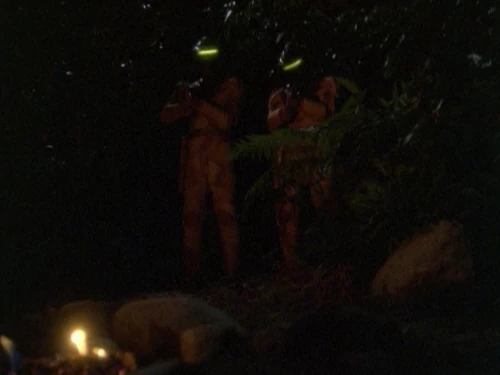 Nachdem beide miteinander geschlafen haben, liegen sie auf dem Boden beim Lagerfeuer. Plötzlich werden beide von sich nähernden Schritten geweckt. Es sind zwei Breen. Worf versucht sich aufzurichten, allerdings werden er und Ezri von jeweils einem Schuss außer Gefecht gesetzt.