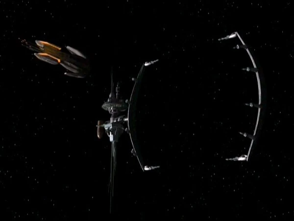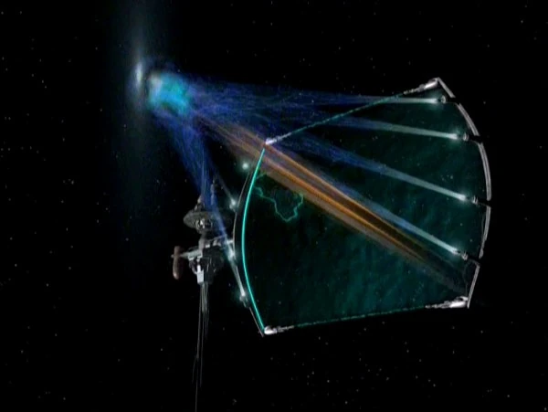 Allerdings ist das Katapult noch instabil und die Voyager wird kurz nach der Kontaktaufnahme von einer Gravitonwelle getroffen. Captain Janeway bietet Tash ihre Hilfe an, um das Katapult zu stabilisieren. Tash stellt als Gegenleistung der Crew der Voyager einen Flug von etwa 1000 Lichtjahren in Aussicht. Er hat bereits in einem Testlauf eine Sonde knapp 600 Lichtjahre weit schleudern können.