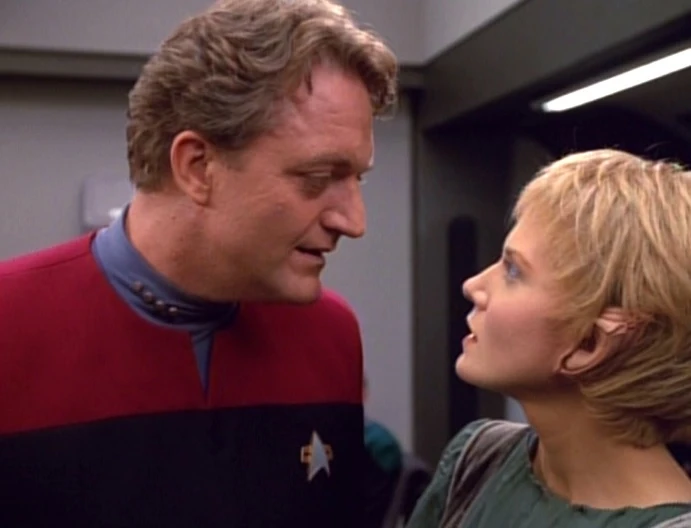 Wenig später hilft Kes bei der Behandlung des leicht verletzten Neelix, nachdem er geholfen hat, einige Kriminelle auf einer Raumstation am Rand der Nekrit-Ausdehnung zu verhaften. (VOY: Das Wagnis)