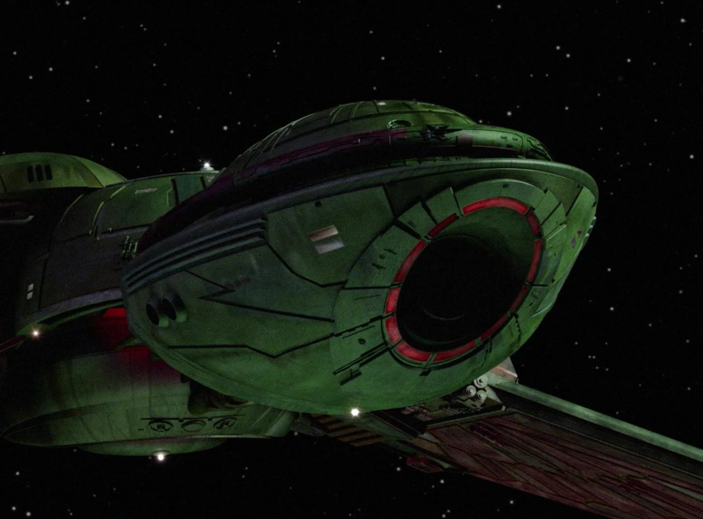 Die IKS Rotarran besitzt an ihrer Spitze eine Schleuse. (DS9: Martoks Ehre)