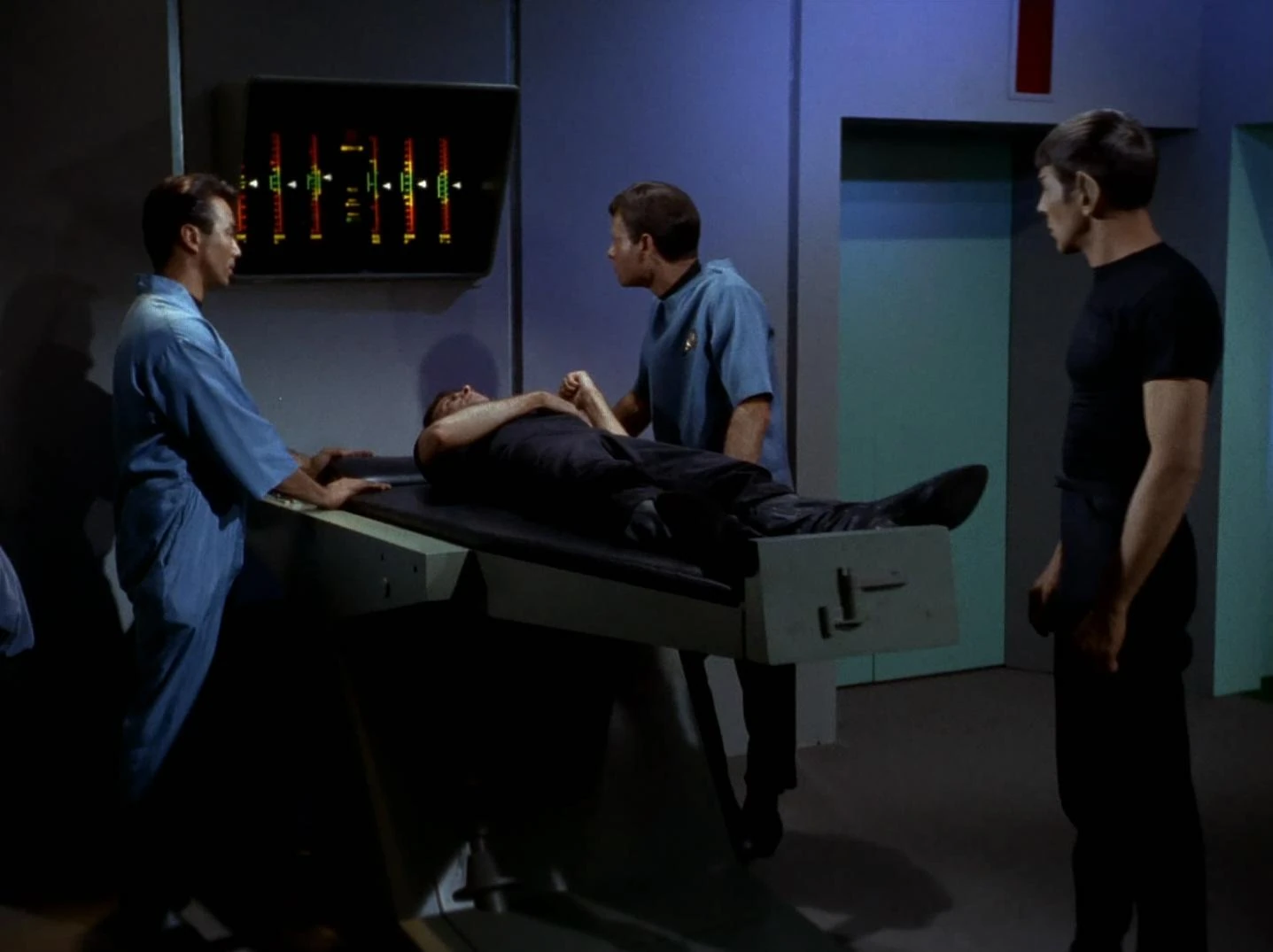 Der Operationstisch ist zudem mit einem Kraftfeld ausgerüstet, um auch schwer infektiöse Patienten zu behandeln. (TNG: Die jungen Greise)