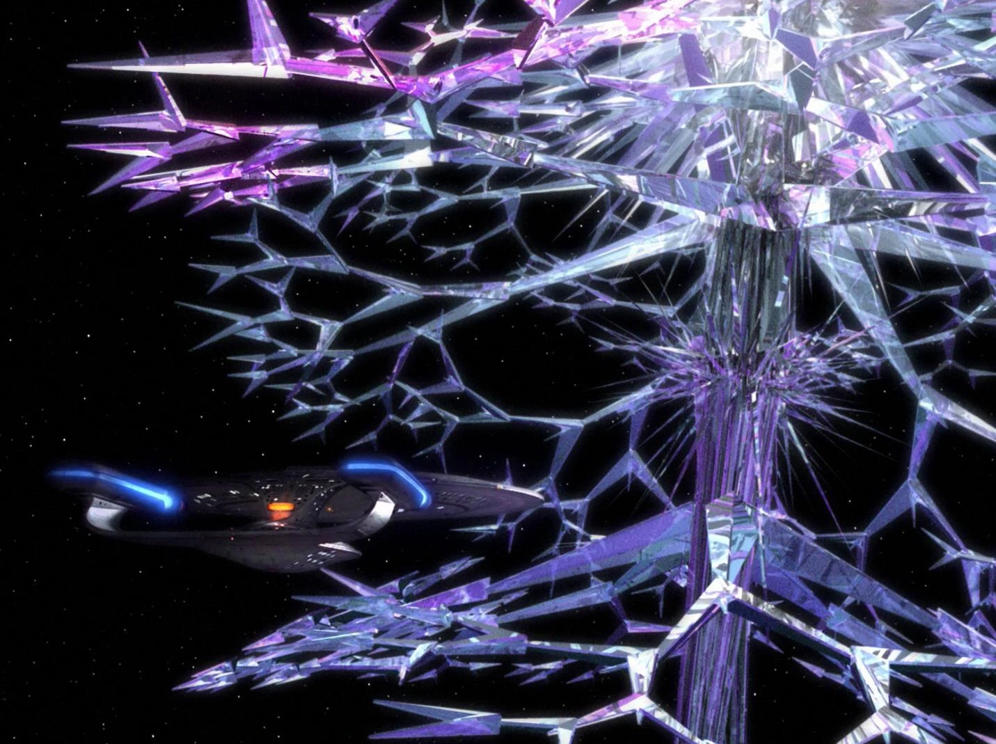 Die Enterprise sieht sich mit dem Kristallwesen konfrontiert.