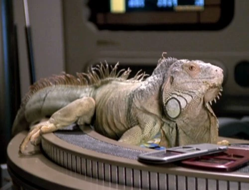 Leonard ist ein holografischer Leguan und wie die Fliege Roy das Haustier von Doktor Lewis Zimmerman.