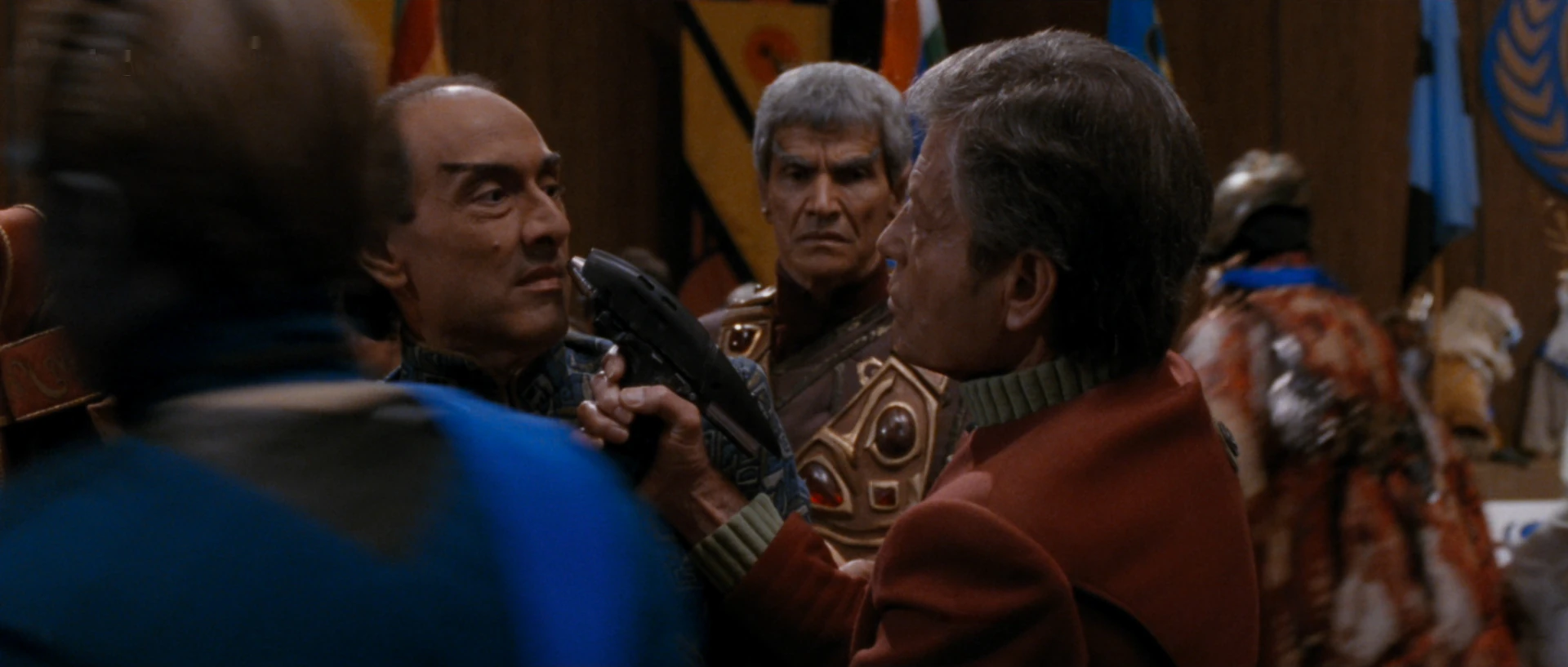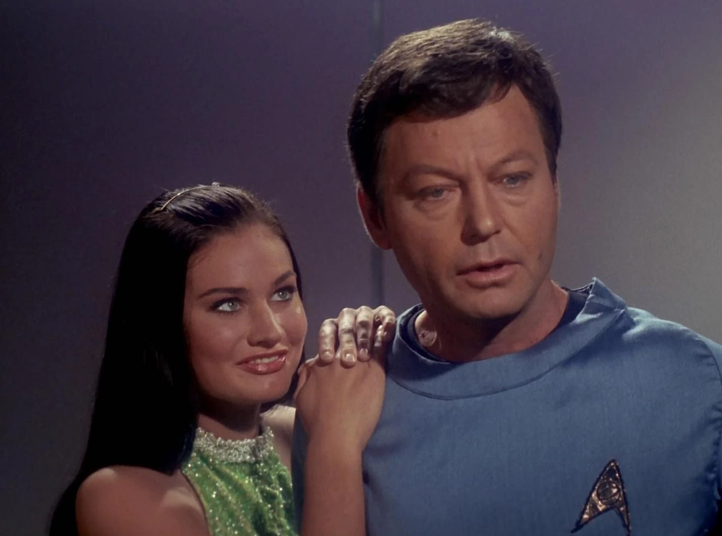 McCoy schützt die falsche Crater vor Captain Kirk.