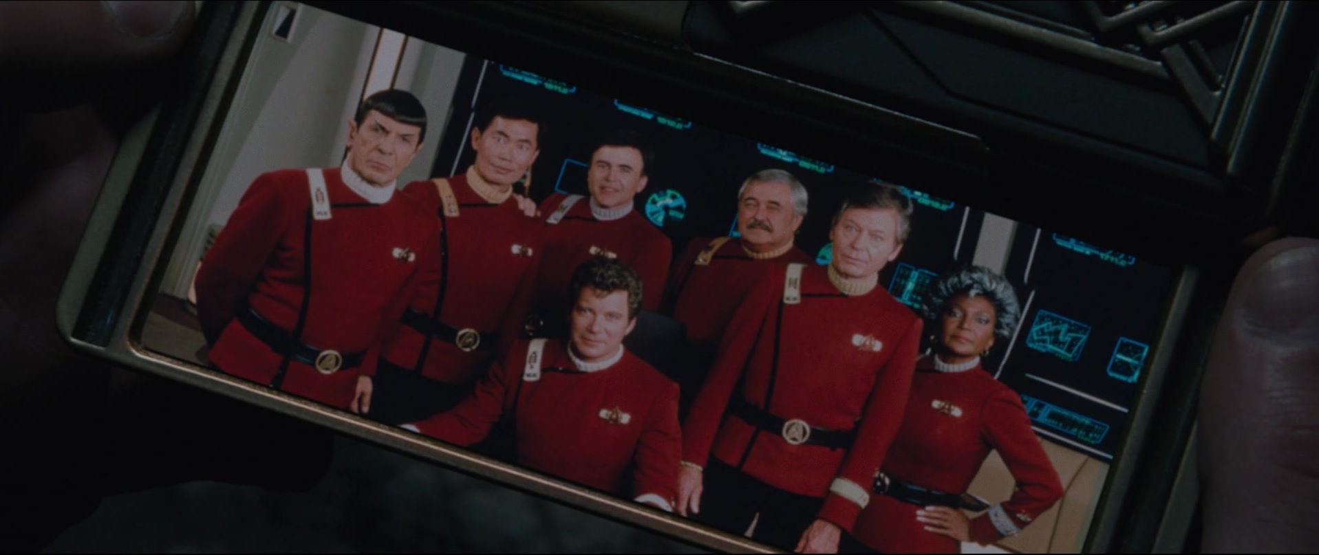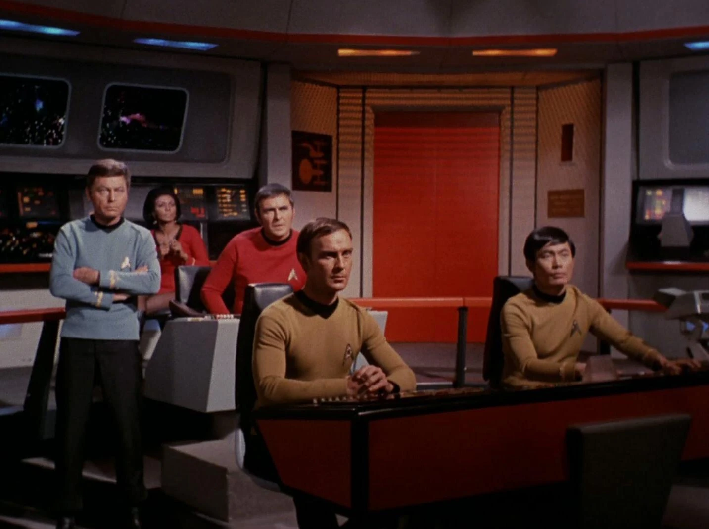Die Brückencrew beobachtet Kirks Kampf gegen den Gorn.