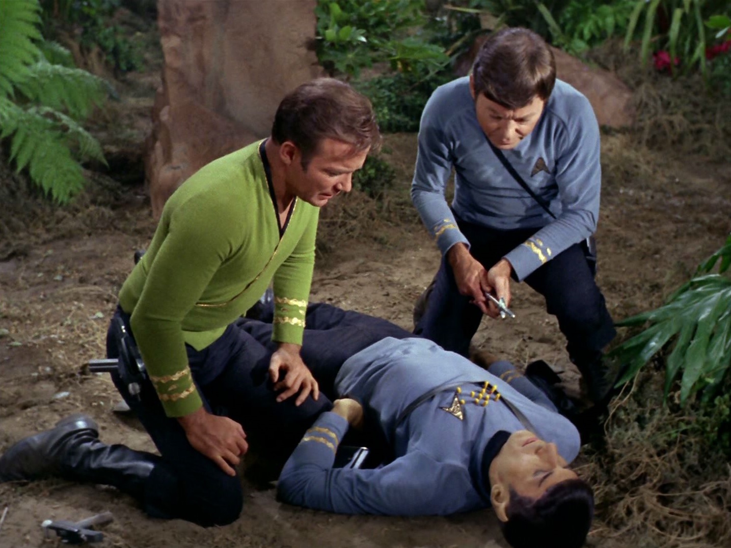 McCoy kümmert sich um den verletzten Kirk.