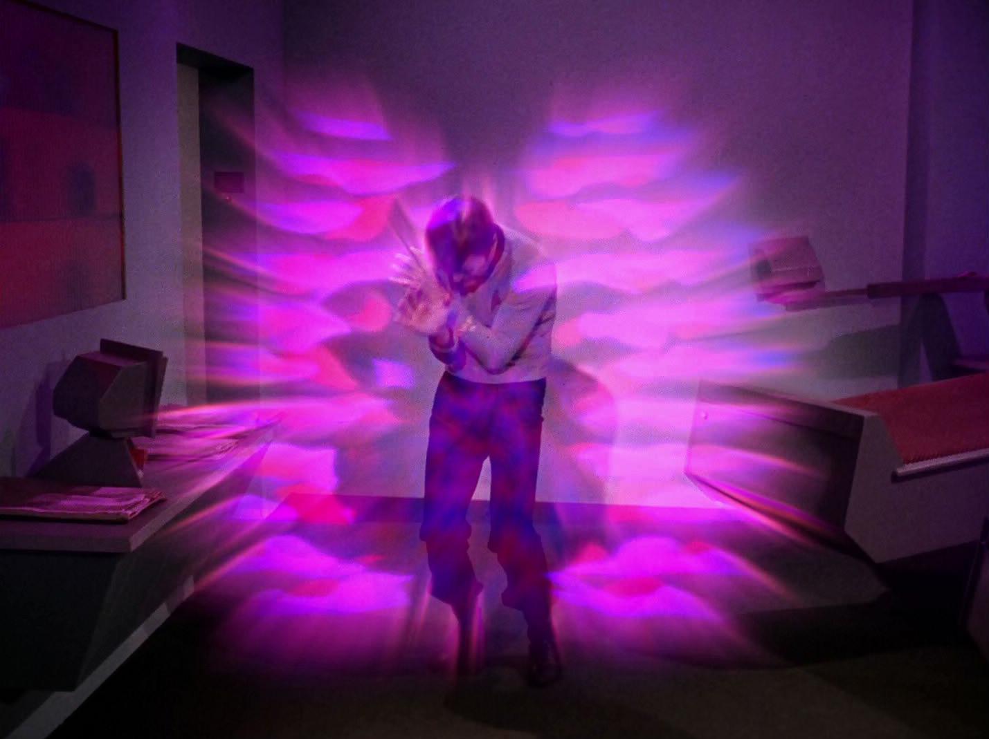 Einige Zeit später erreicht die Enterprise den Planeten Deneva, auf dem wahrscheinlich Massenwahnsinn ausgebrochen ist. Kirk beamt mit einem Außenteam auf die Planetenoberfläche, um die Lage in der Kolonie zu prüfen. Das Außenteam wird von einigen Kolonisten angegriffen, doch es gelingt dem Außenteam diese zu betäuben. McCoy stellt bei den Kolonisten einige seltsame Werte fest. Später stellt sich heraus, dass Neuralparasiten für diesen Massenwahnsinn verantwortlich sind. Allerdings wird auch Spock von diesen Neuralparasiten infiziert und er erleidet schreckliche Qualen. McCoy kann allerdings nichts für ihn tun. Später gelingt es Spock einen dieser Neuralparasiten einzufangen und McCoy fängt an diesen Parasiten zu untersuchen. McCoy versucht alles, um diesen Parasiten zu vernichten, aber er findet keine Lösung. Schließlich erkennt McCoy, dass Licht die Parasiten tötet. Spock stellt sich zur Verfügung und lässt sich mit dem vollen Lichtspektrum bestrahlen, der Parasit wird dabei getötet, allerdings erblindet Spock dabei. Weitere Untersuchungen ergeben, dass UV-Licht ausreicht, um die Parasiten zu töten. Die Enterprise bringt einige Satelliten in den Orbit und diese bringen das UV-Licht auf die Oberfläche, welche die Parasiten töten. Kurz darauf stellt sich heraus, dass Spock gar nicht blind ist, sondern dass ihn sein Inneres Augenlid vor dem Licht geschützt hat. (TOS: Spock außer Kontrolle)