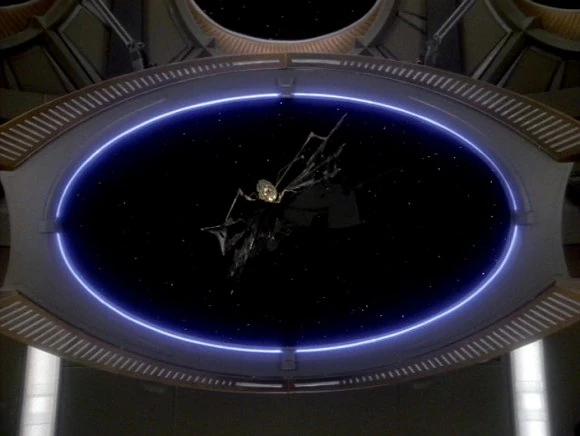 Sisko will den Versuch abbrechen und Deep Space 9 kontaktieren, um seine Mannschaft um Unterstützung zu bitten. Es gelingt ihm allerdings nicht, eine Verbindung aufzubauen, da die Tachyonenströme das Schiff in das cardassianische System tragen. Plötzlich tauchen drei cardassianische Kriegsschiffe auf und begrüßen das Leuchtschiff mit einem Antimateriefeuerwerk. Gul Dukat persönlich gratuliert Sisko zum erfolgreichen Nachstellen des Warpflugs von Bajor nach Cardassia. (DS9: Die Erforscher)