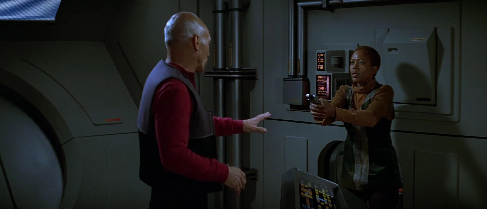 Picard berichtet ihr von der Zukunft und das sein Schiff von den Borg bedroht wird. Als sie wenig später diese sieht, gerät sie in Panik. Um die Borg zu bekämpfen, nimmt Picard sie aufs Holodeck mit und die Borg, verfolgen die beiden dorthin. Picard aktiviert dort sein Lieblingsprogramm The Big Goodbye