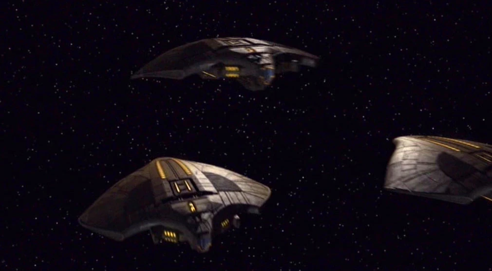 Die Sh'Raan vertreibt die mazaritischen Schiffe.