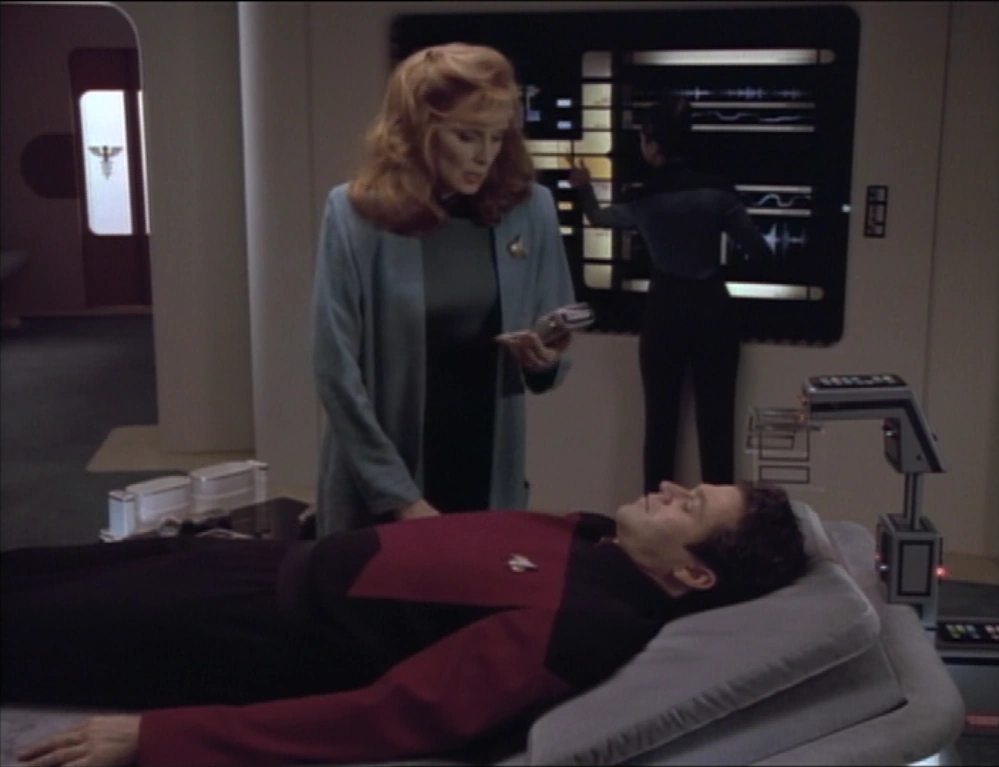 Will und Deanna finden nun heraus, was sie einander wirklich bedeuten. Als Laren dazukommt wird die Situation etwas peinlich und so ist Deanna schnell verschwunden.