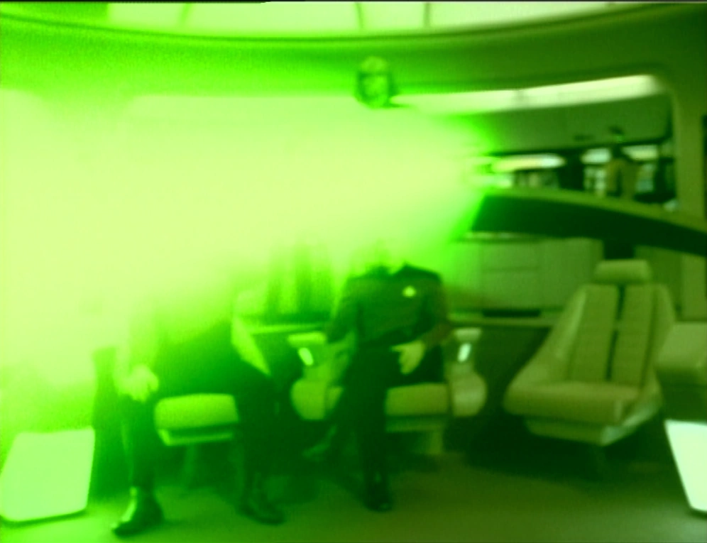 Ein schiffsweiter Scan beeinträchtigt alle Systeme, ein Ausweichmanöver hat keinen Erfolg. Dann gibt es einen grünen Blitz und jeder auf der Brücke scheint sehr verwirrt. Niemand kann sich an irgend etwas erinnern, nicht einmal an seinen Namen.