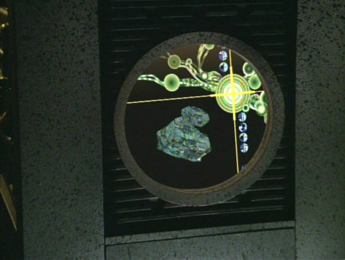 Die Darstellung einer multinkinetischen nautronischen Mine auf einem Display.