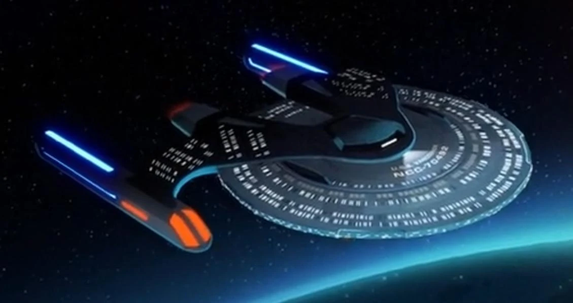 Sie trägt ihre beiden Warpgondeln an der Unterseite der Untertassensektion, während die Impulsantriebe von dieser zum Heck ragen. Die Deflektorschüssel ist in die Unterseite des Primärrumpfs eingelassen. Der Shuttlehangar an der Unterseitenrückseite fasst neun Typ-6A-Shuttles und 18 Argo-Buggys. (LD: Mondtrümmer und Liebesleid)