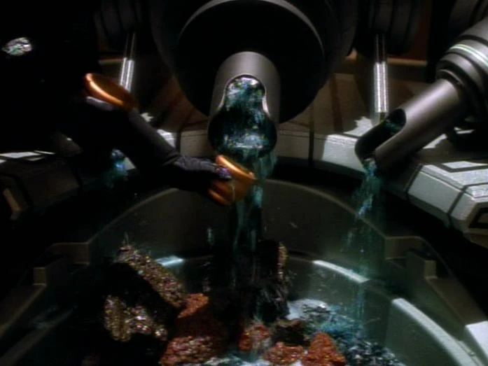 Zek zeigt sich sichtlich beeindruckt von Kira und will ihr den Hof machen. Er vergleicht Kiras Augen mit dem Glanz kibberianischer Feuerdiamanten.
