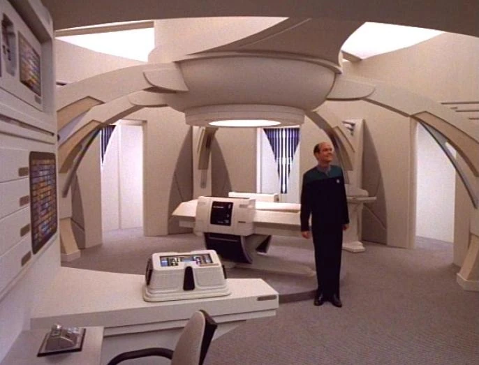 Die Krankenstation scheint ähnlich neue Wege in Design und Ausstattung einzuschlagen. Sie verfügt bei kreisförmiger Anordnung über mehrere kleine, miteinander verbundene Nischen und kleinere Korridore. Des Weiteren ist sie mit mehreren Standardbetten sowie einem speziellen Biobett ausgestattet, welches für genauere Untersuchungen oder umfangreiche medizinische Eingriffe genutzt wird. Weiterhin ist dort das MHN zu finden, das im Notfall die reguläre Besatzung unterstützen soll. Allerdings befindet sich auf dieser Klasse die neue Typ II Version des ursprünglichen MHNs. (VOY: Flaschenpost)