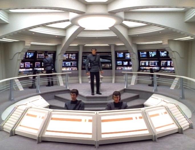 Das Brückendesign ist trotz stilistischer Änderungen relativ klassisch aufgeteilt. Sie ist in insgesamt zwei Ebenen unterteilt, wobei die untere eine große halbkreisförmige Station enthält. In dieser besonderen Station sind die beiden Konsolen für die Navigation des Schiffes sowie die OPS-Konsole integriert. Davor ist der obligatorische Hauptbildschirm in die Wand eingelassen. Die Brücke scheint in ihrem Design stark dem Brückendesign der Excelsior-Klasse zu folgen, bei dem die meisten Konsolen in der runden Außenwand eingelassen sind und somit keine direkte Sicht auf den Hauptschirm ermöglichen.