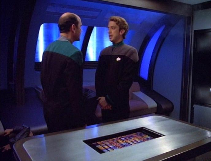Dieser Raum enthält einen großen Tisch und mehrere Sofas. In dem Tisch befindet sich außerdem ein Display mit einer Konsole, die viele Daten und Informationen enthält. (VOY: Flaschenpost)