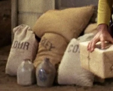 Im Jahr 2268 befinden sich vor einem Geschäft (Laden) mehrere Säcke mit Lebensmitteln in der von den Melkoten erschaffenen Stadt Tombstone. (TOS: Wild West im Weltraum)